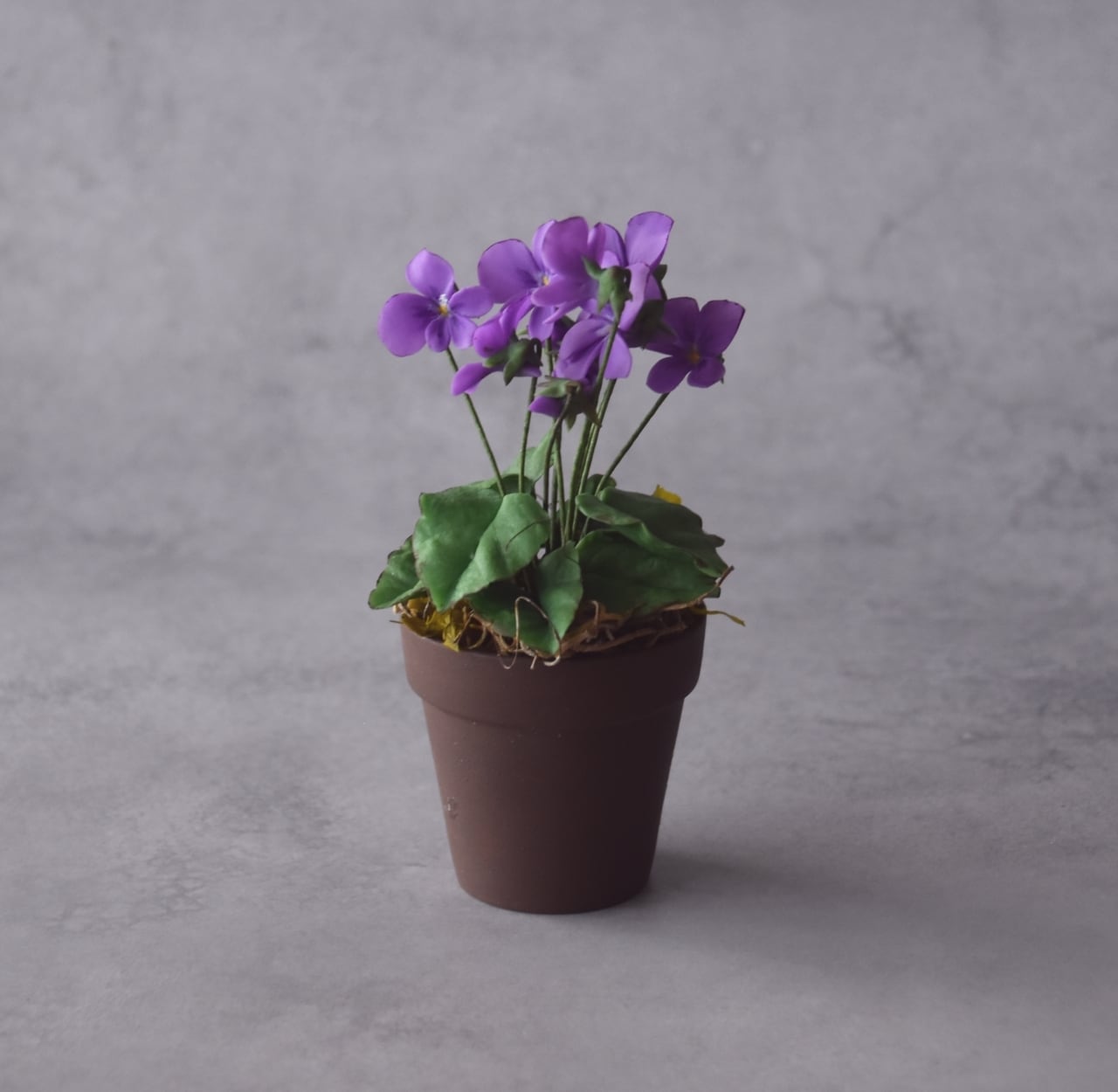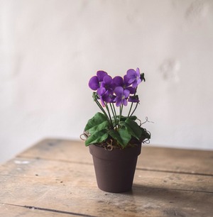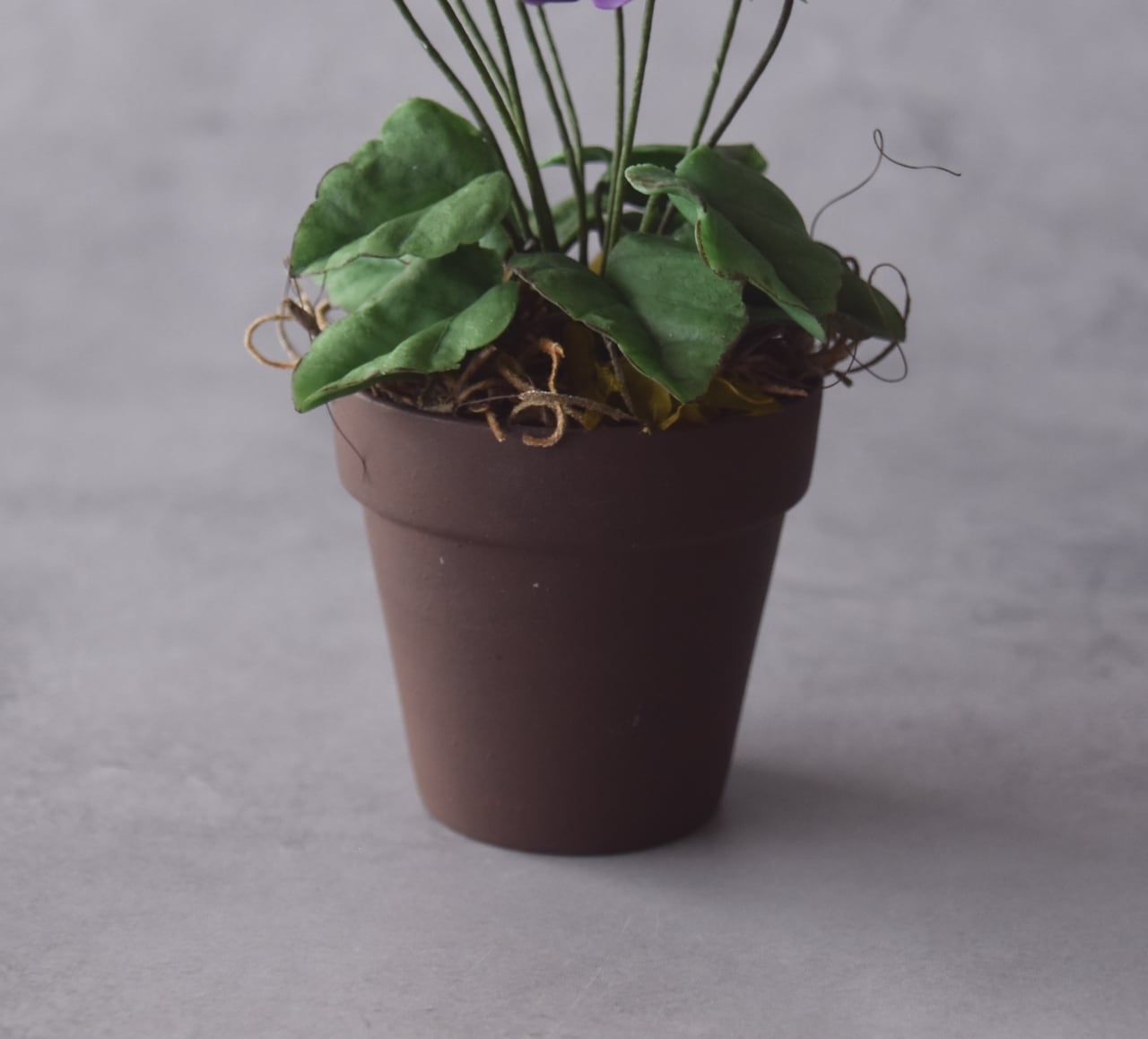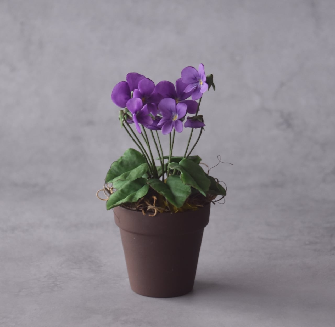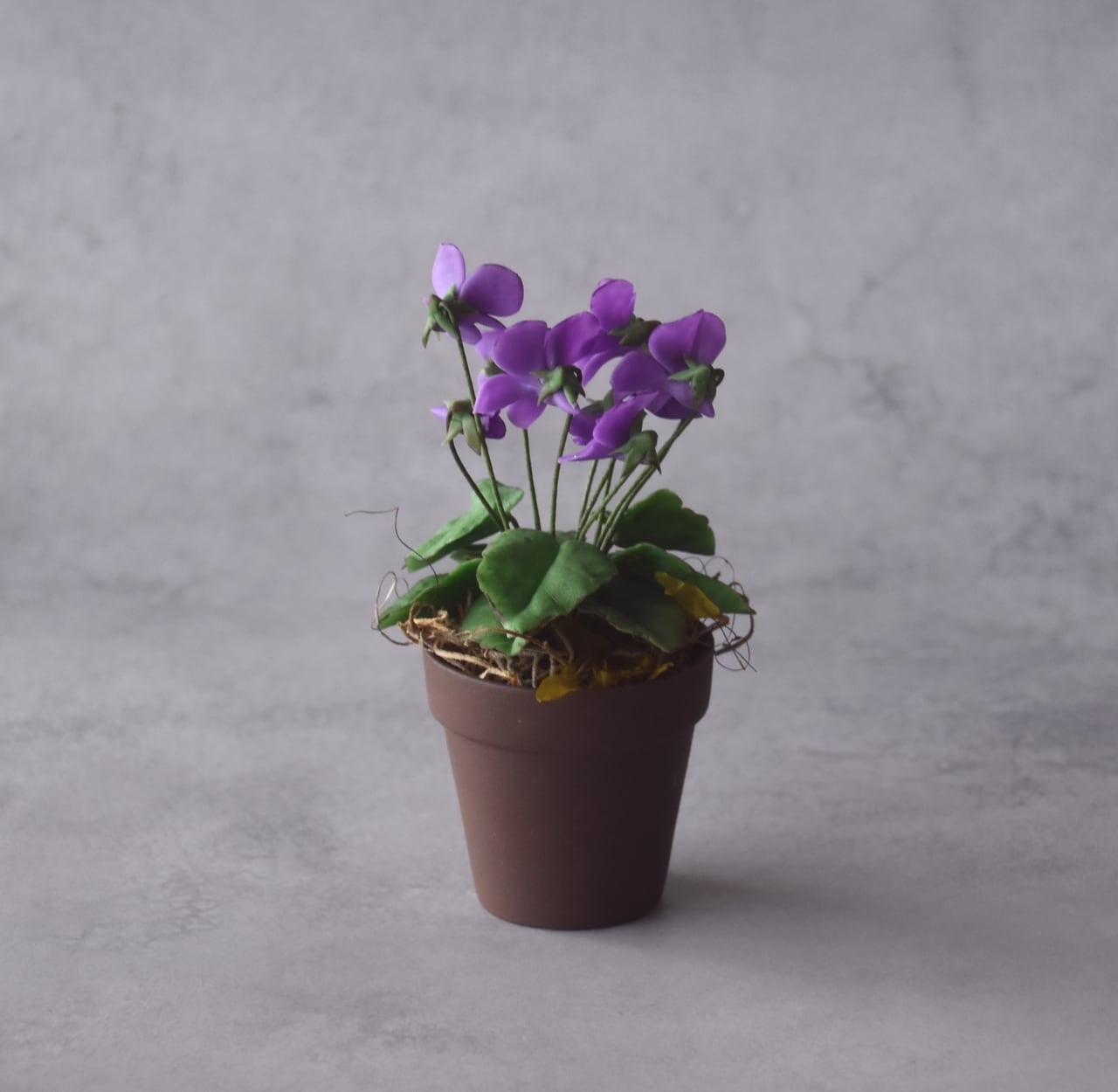 ◆スミレのクレイフラワー◆ブラウンポットの小さなお花|インテリア・プレゼントに S1416