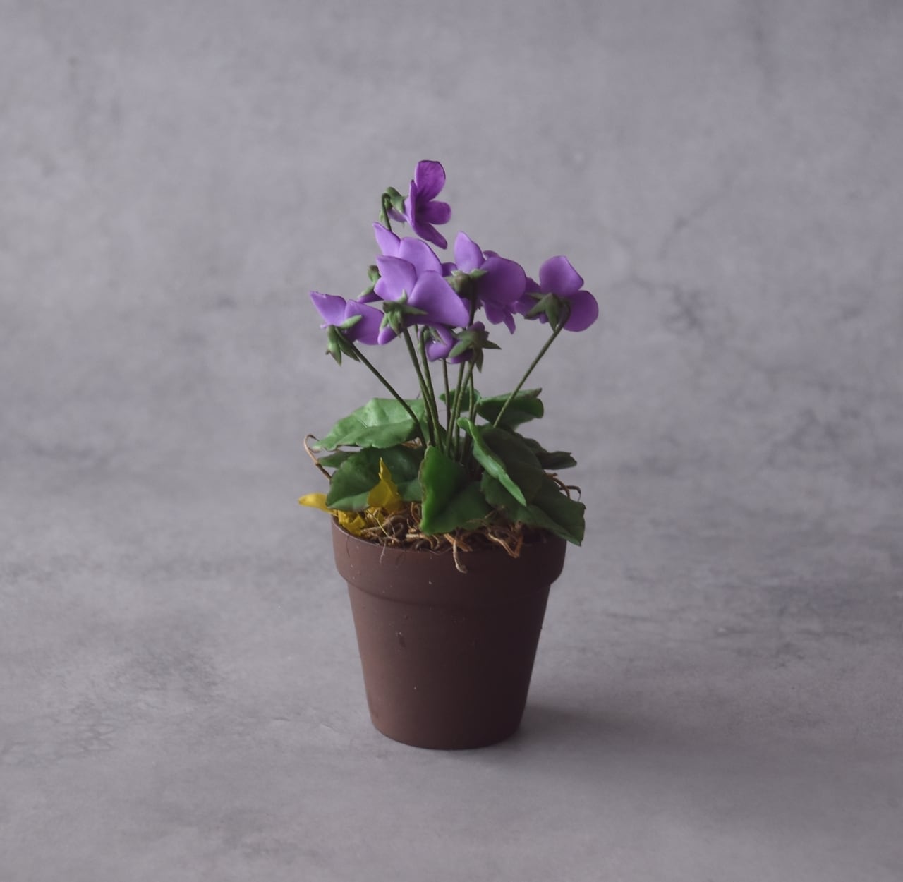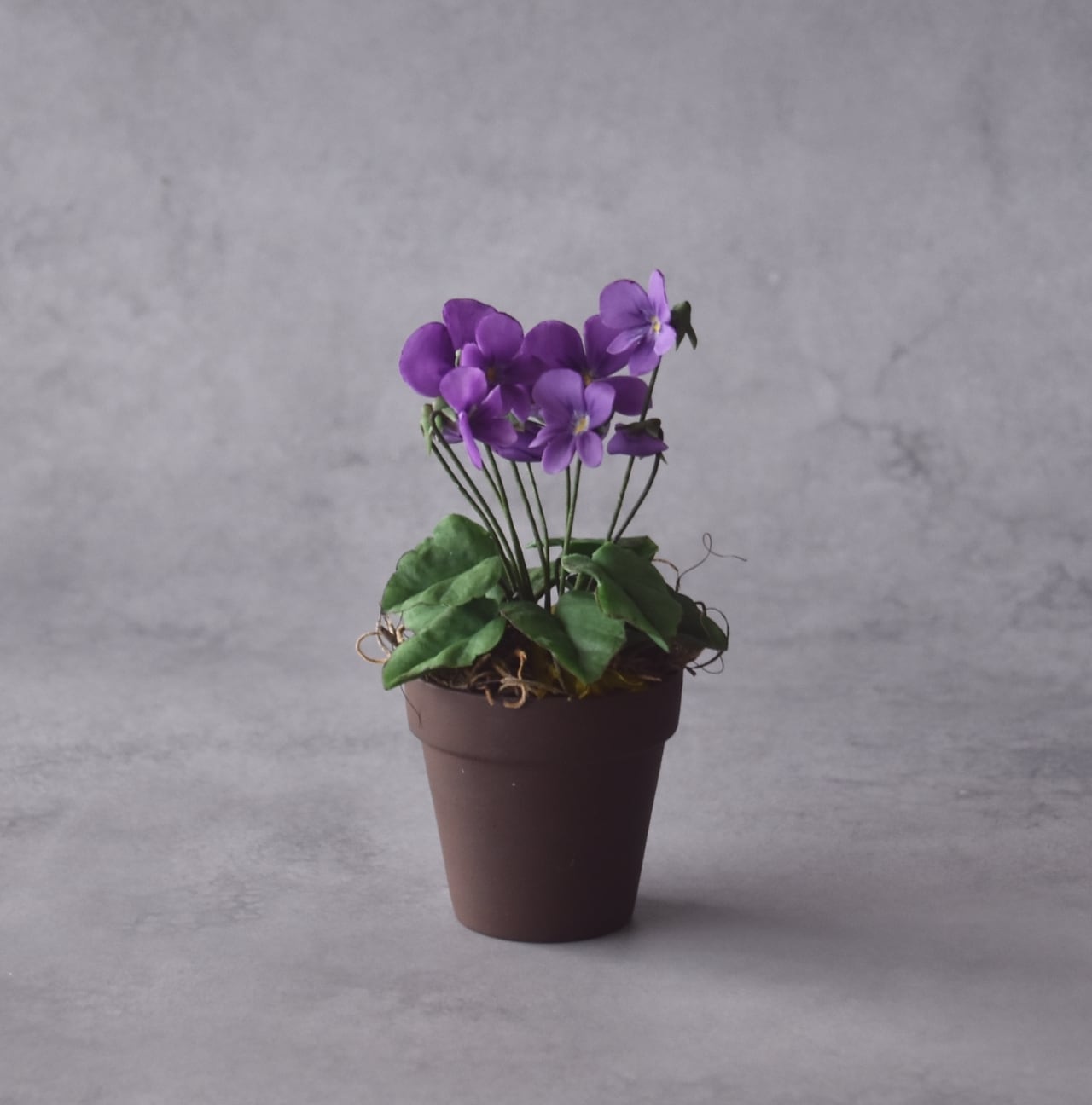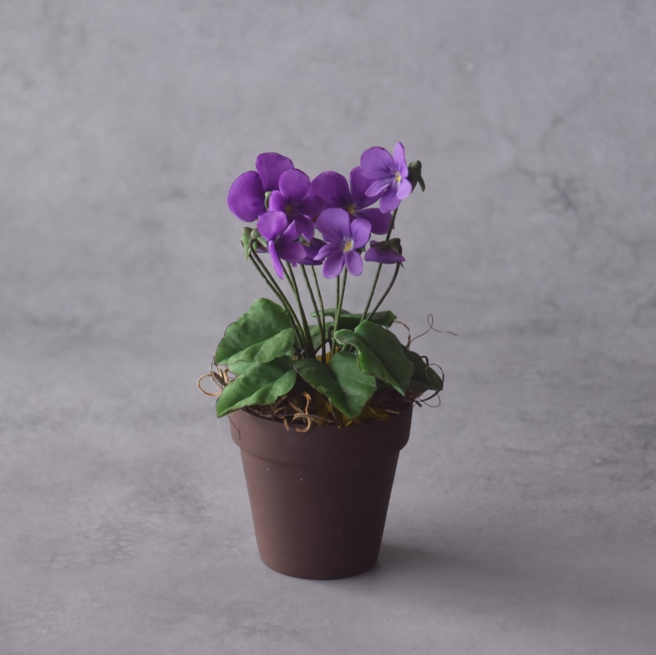 ◆スミレのクレイフラワー◆ブラウンポットの小さなお花|インテリア・プレゼントに S1416
