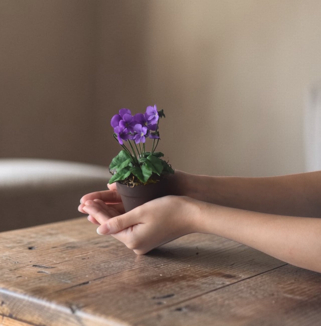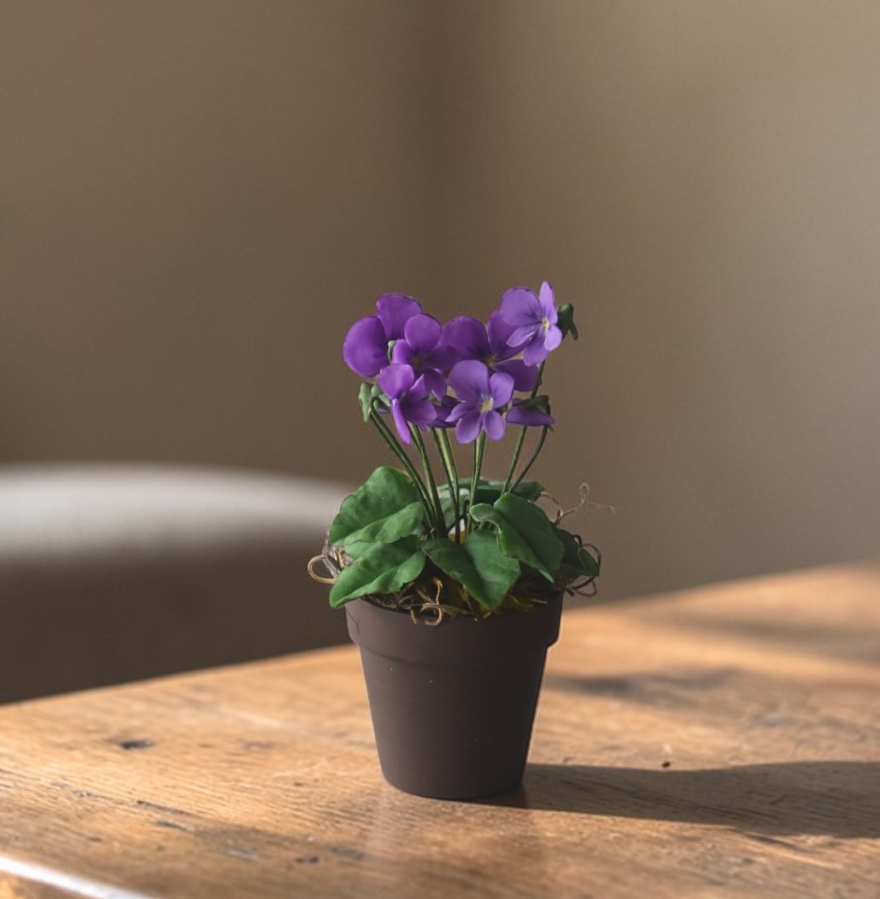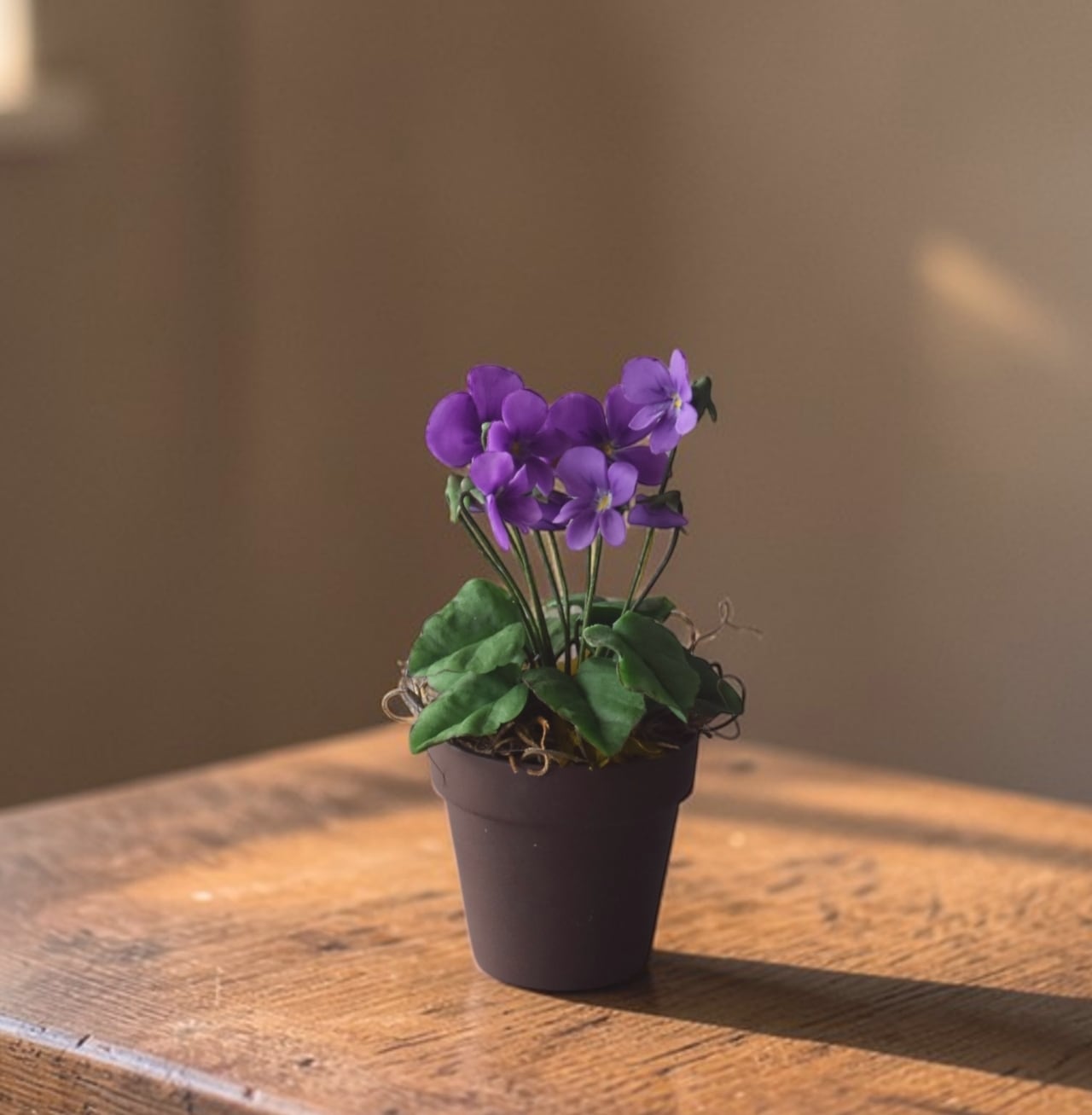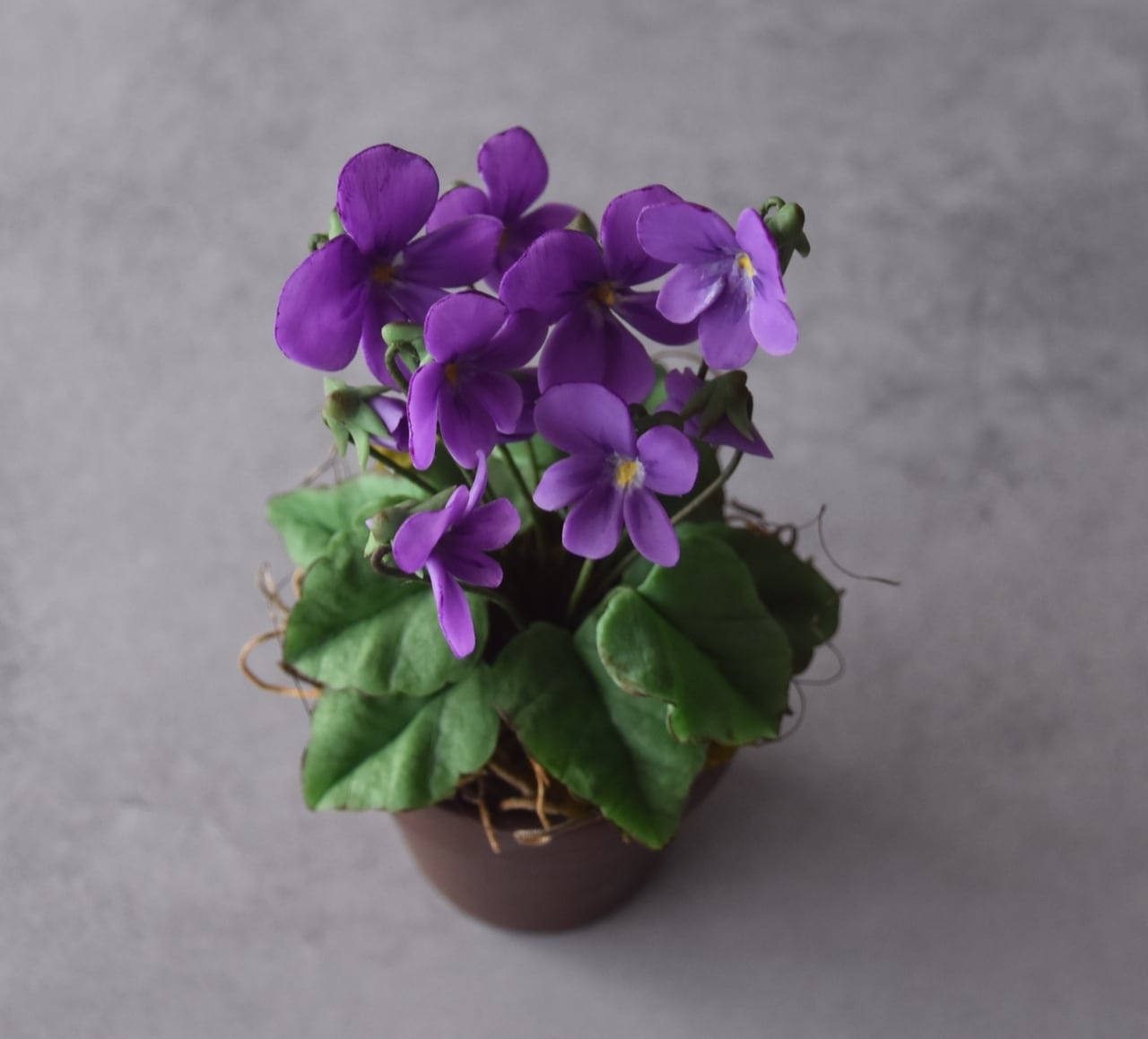 ◆スミレのクレイフラワー◆ブラウンポットの小さなお花|インテリア・プレゼントに S1416