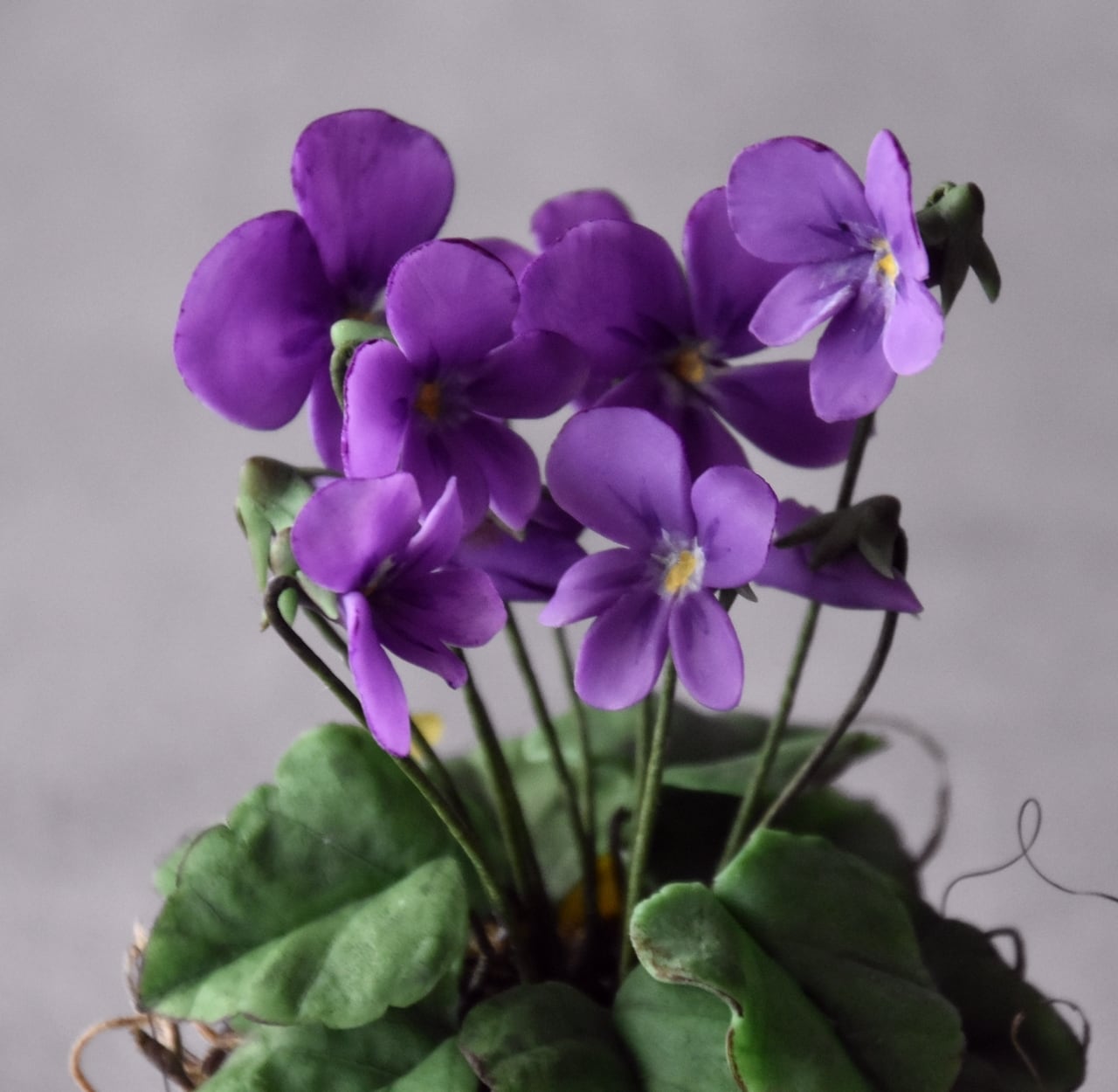 ●スミレの花はすべて粘土で制作しています。