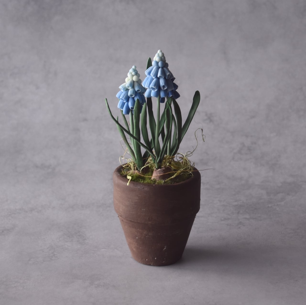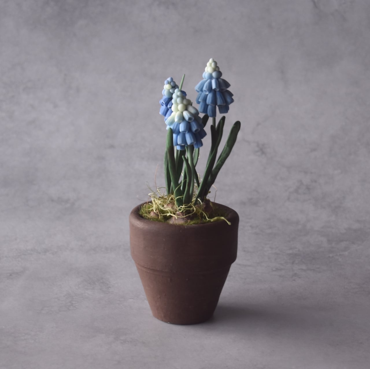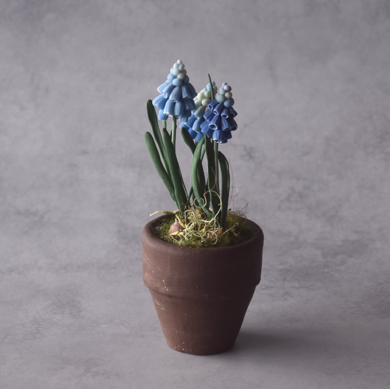 ◆ムスカリのクレイフラワー◆ブラウンポットの小さなお花|インテリア・プレゼントに M1424