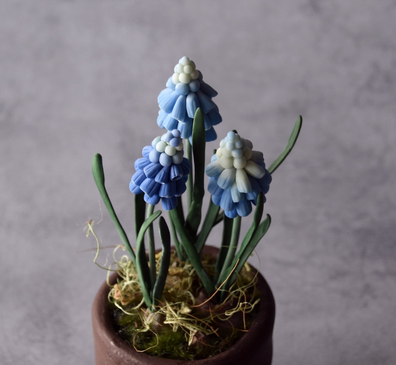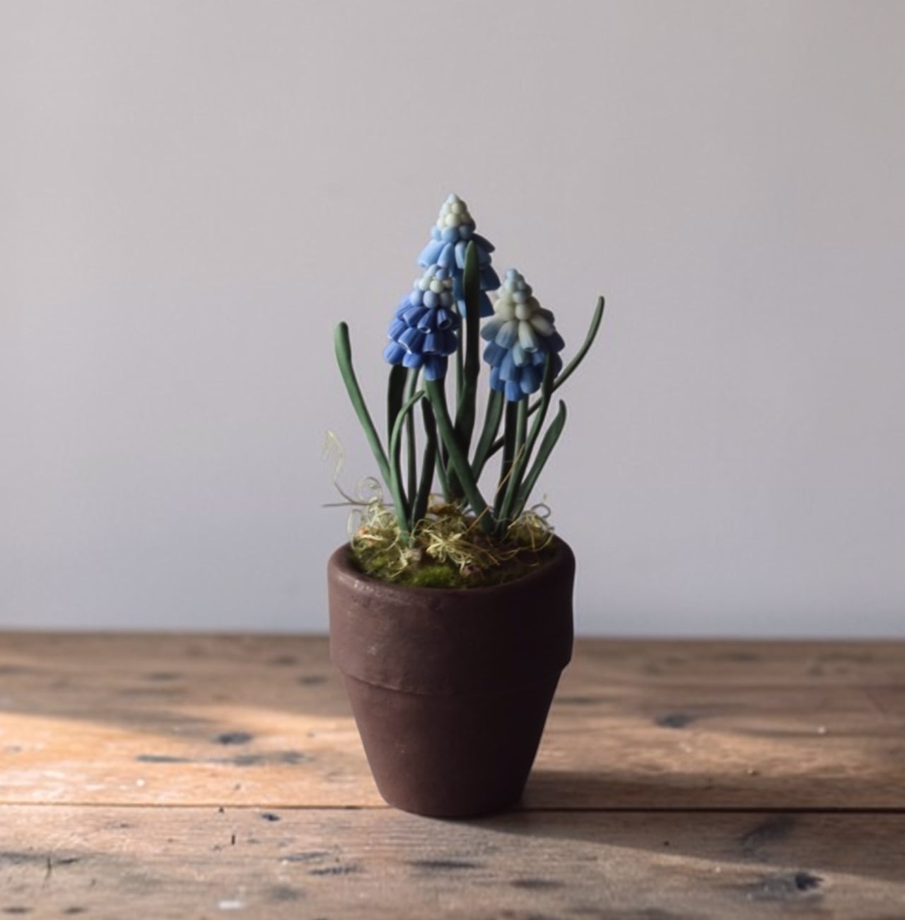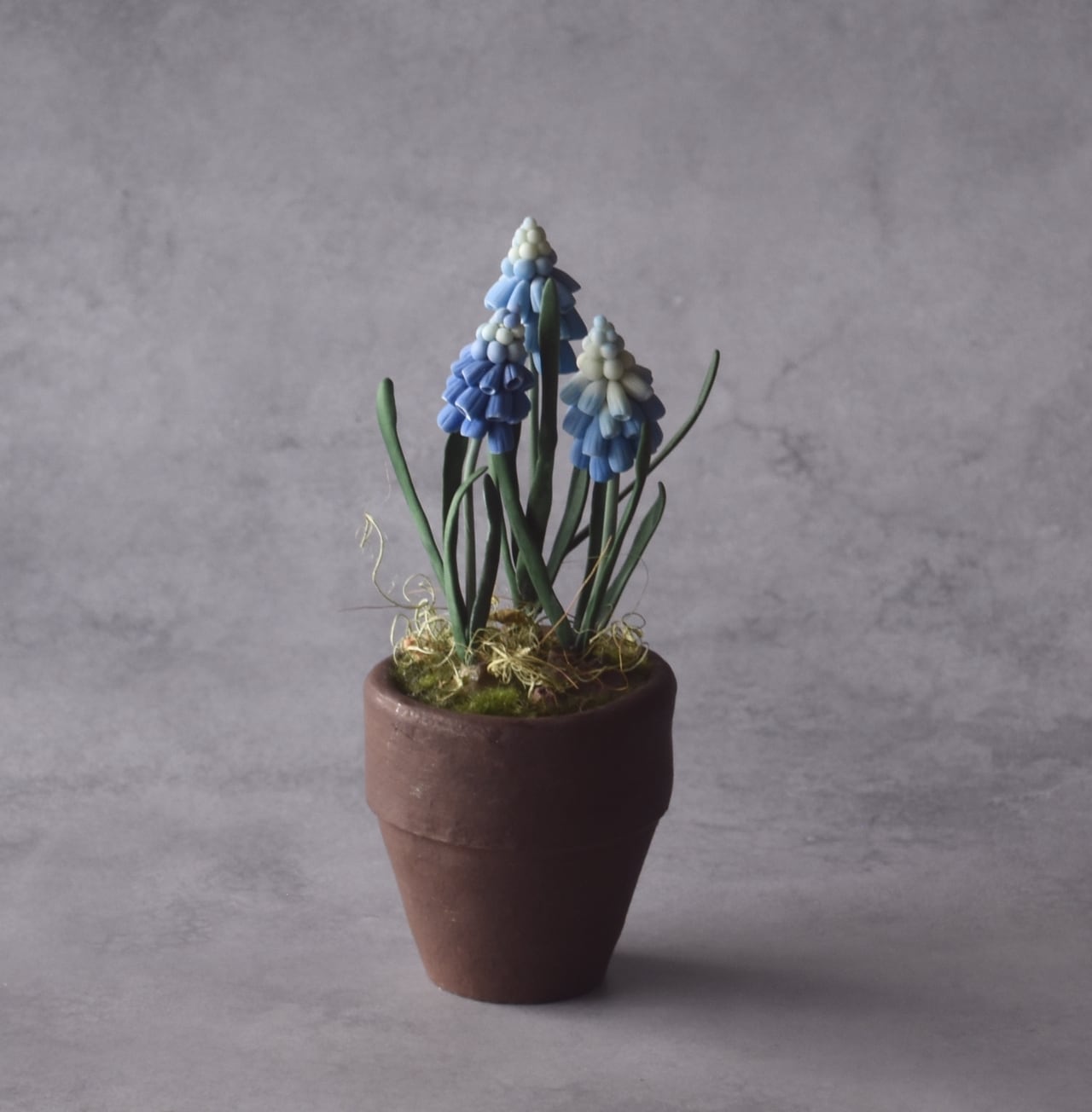◆ムスカリのクレイフラワー◆ブラウンポットの小さなお花|インテリア・プレゼントに M1424