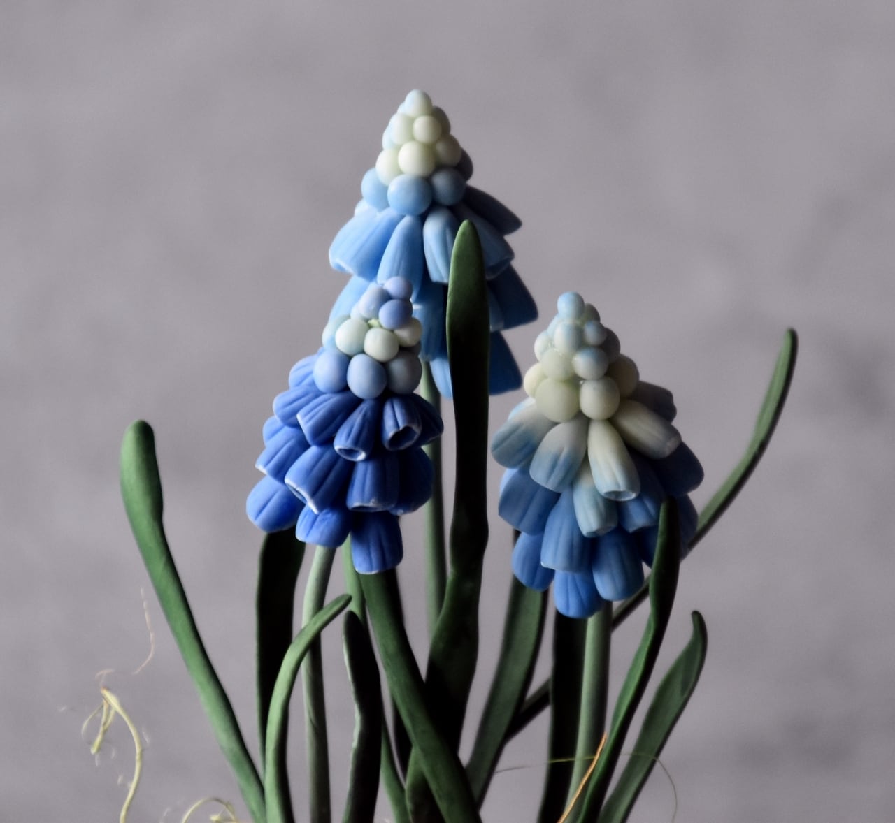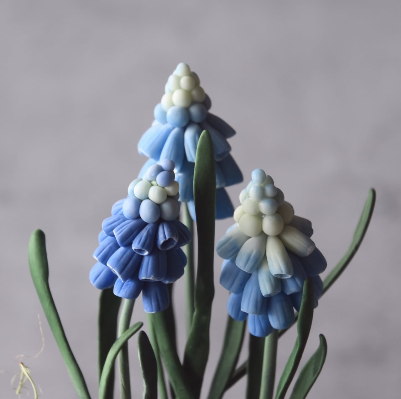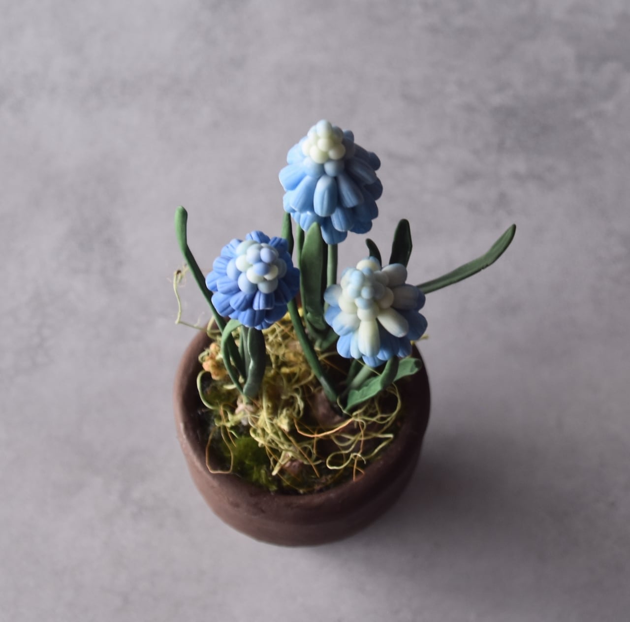 ●ムスカリの花はすべて粘土で制作しています。