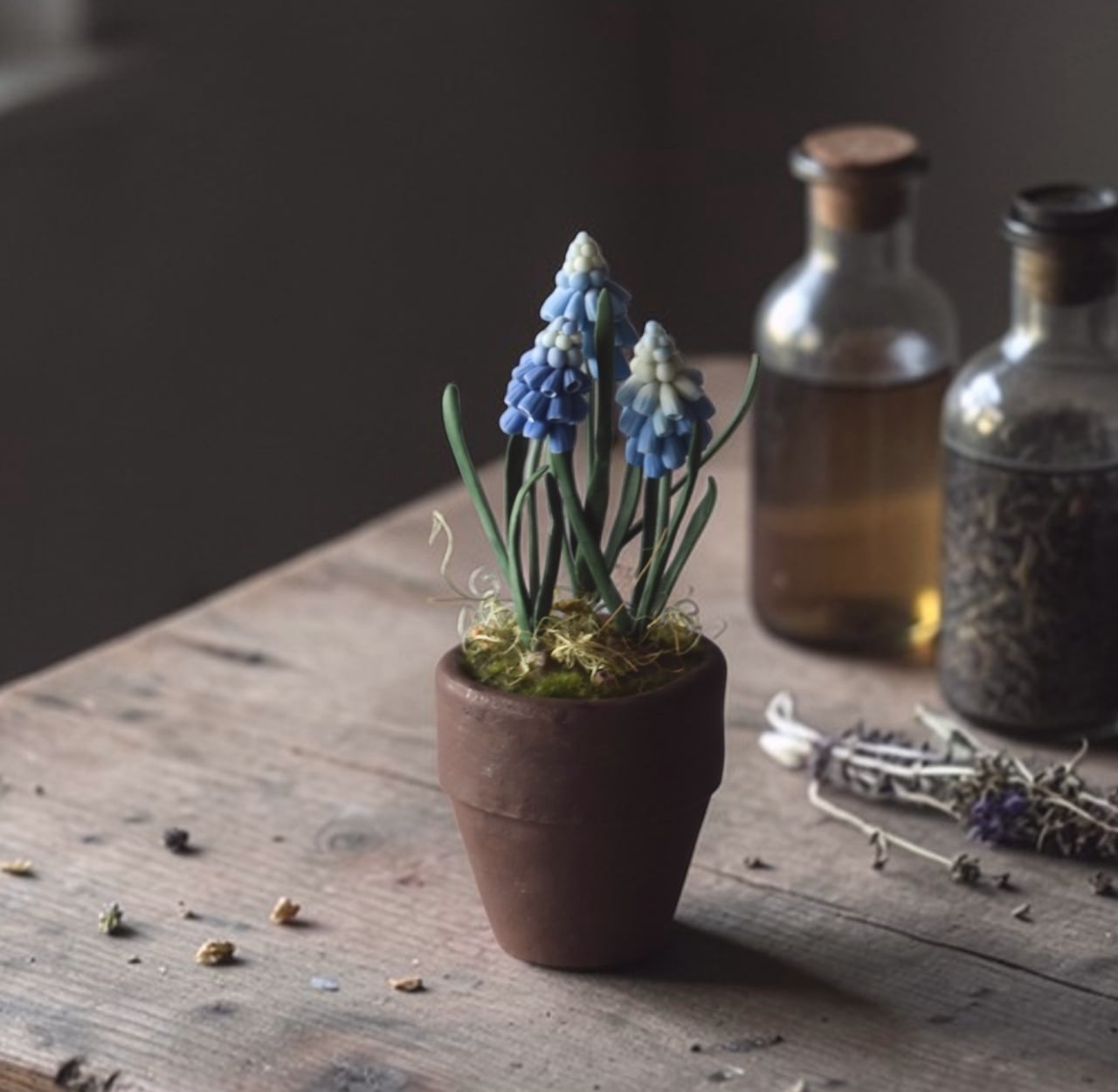 小さなムスカリの可愛らしさがぎゅっと詰まった作品です。