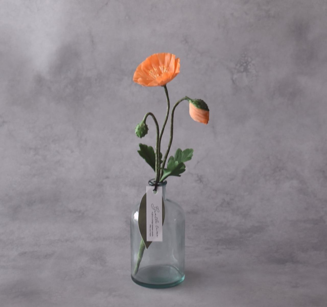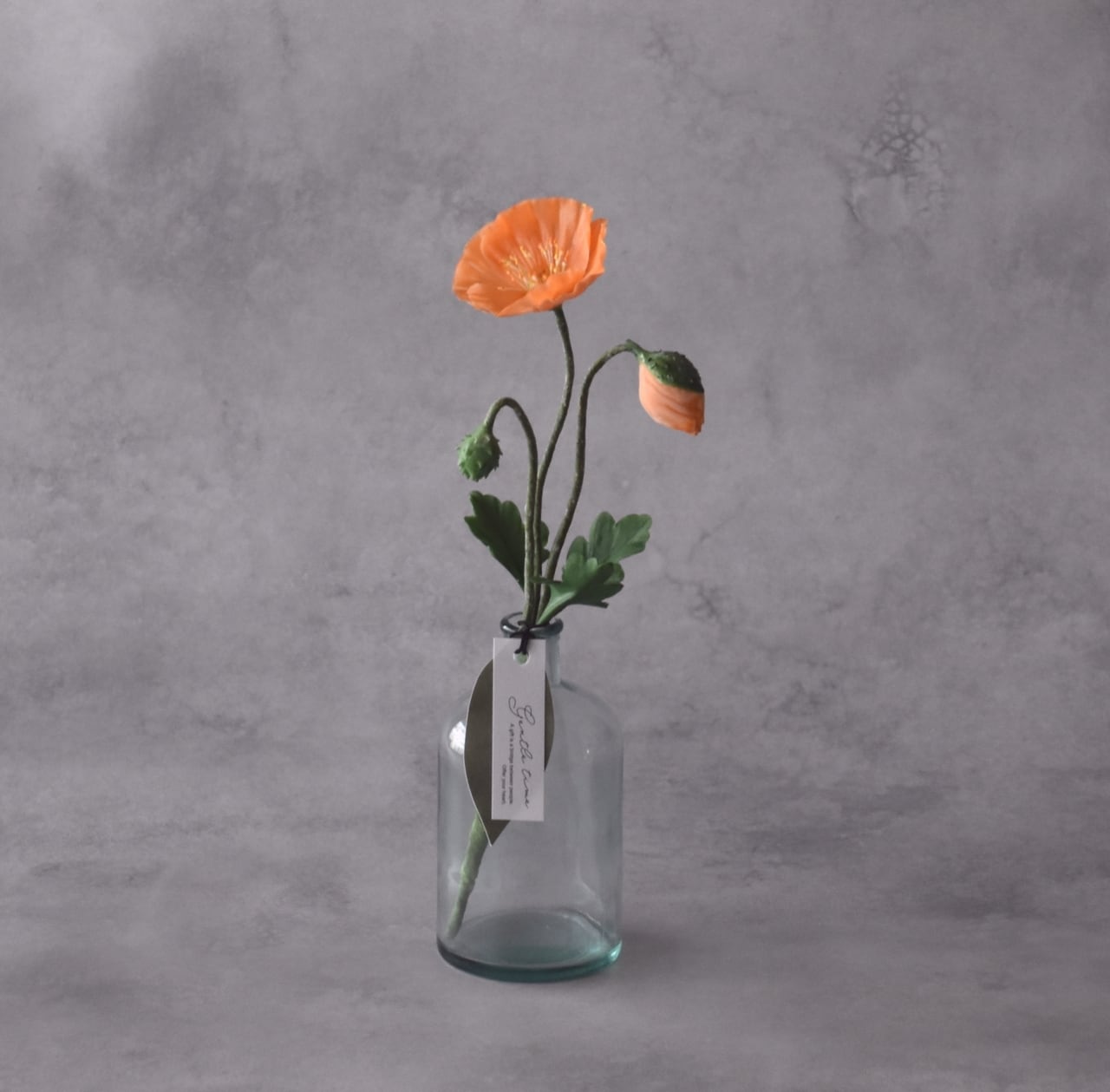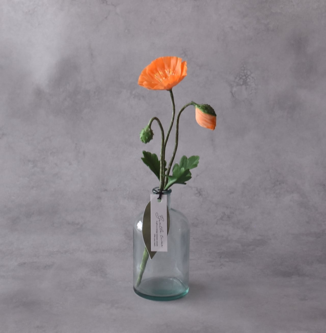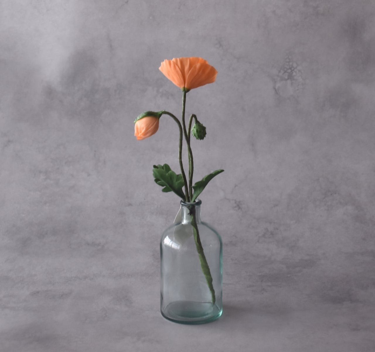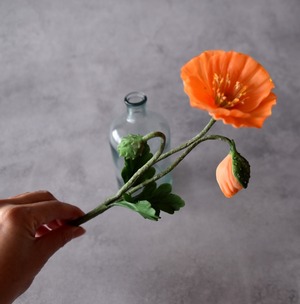 ◆ポピーの クレイフラワー・オレンジ|ガラスボトル|枯れない花・インテリア・ギフトP1430