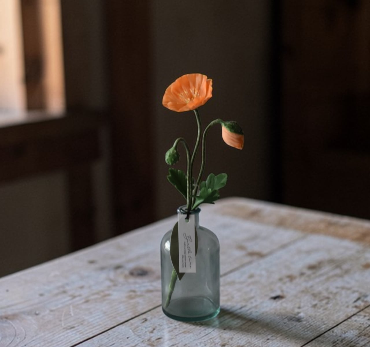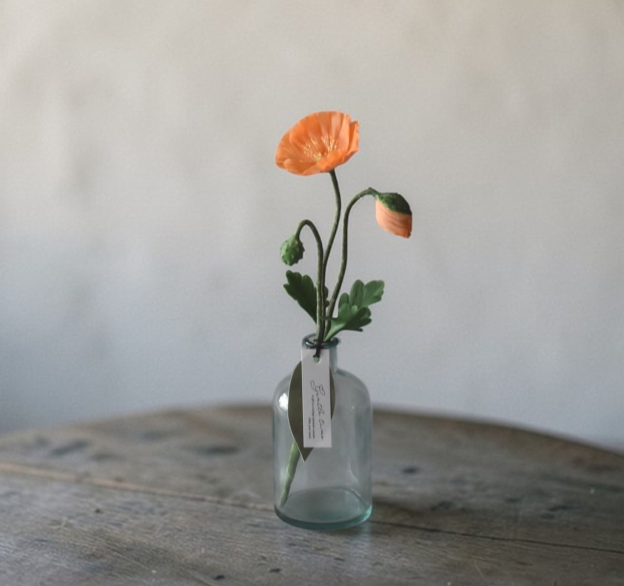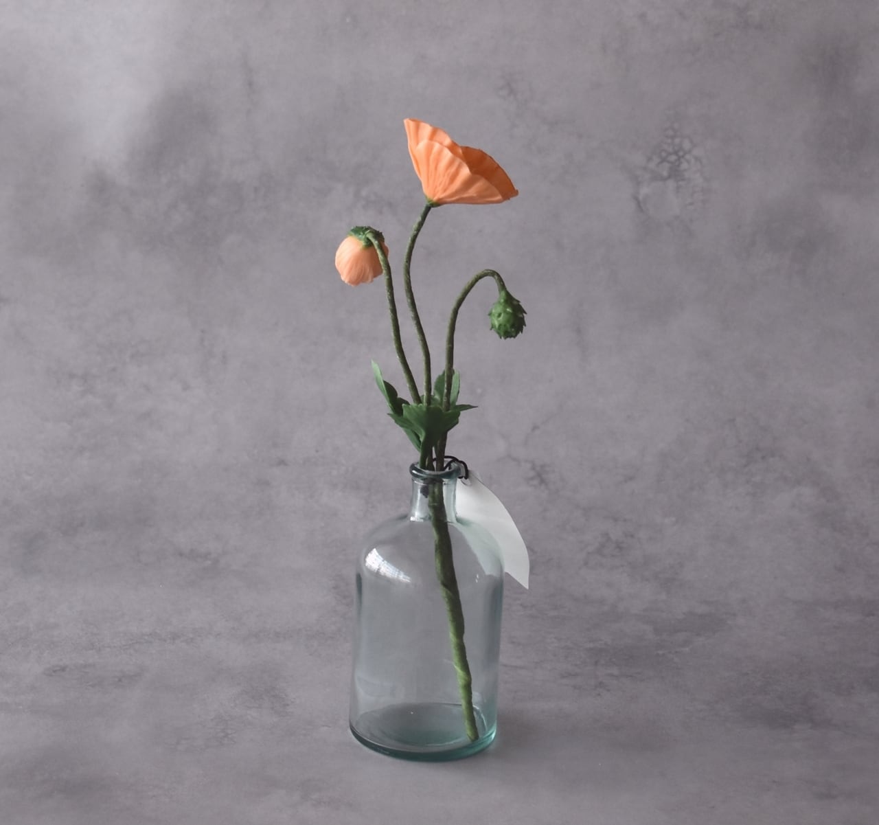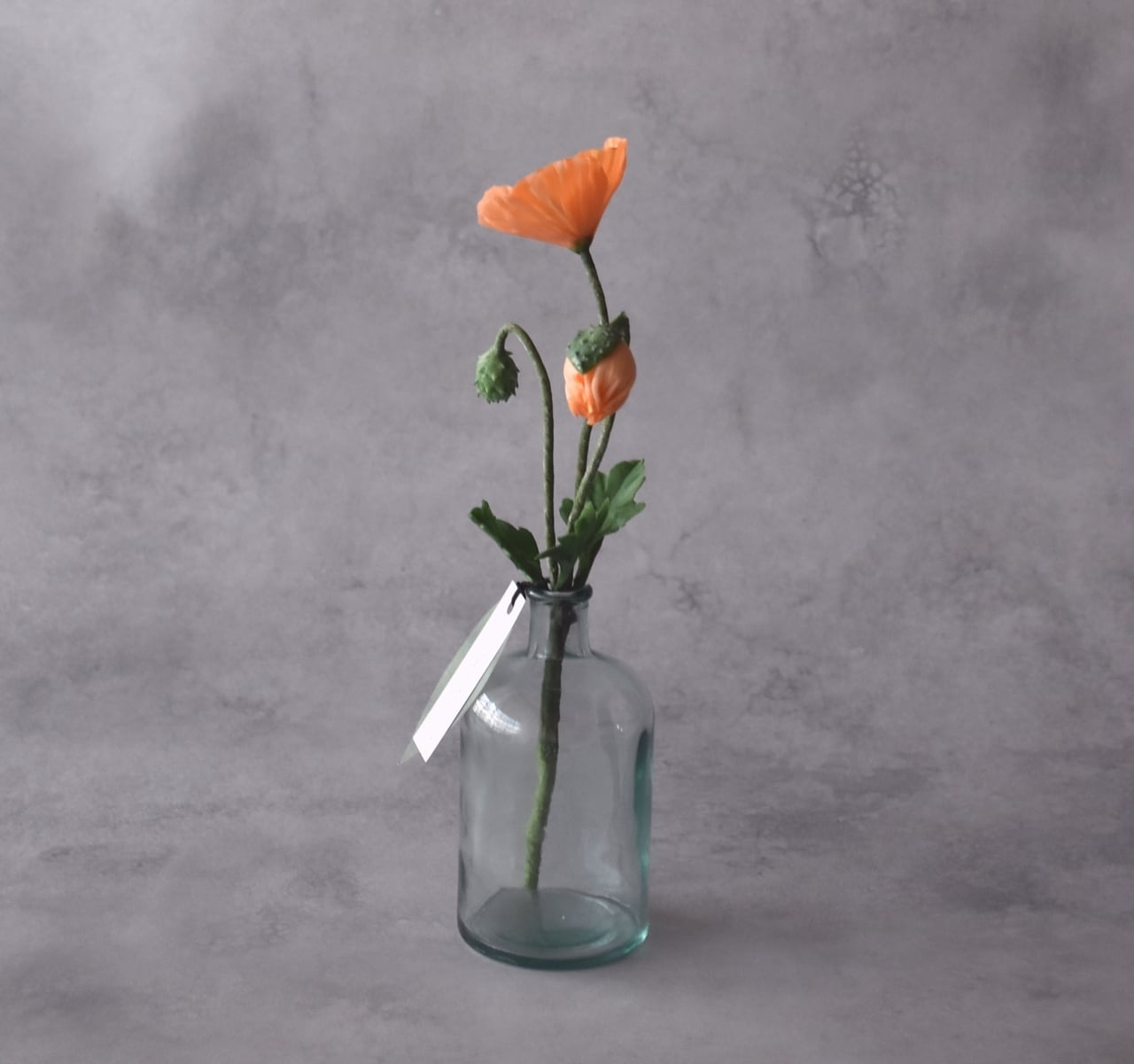 ◆ポピーの クレイフラワー・オレンジ|ガラスボトル|枯れない花・インテリア・ギフトP1430
