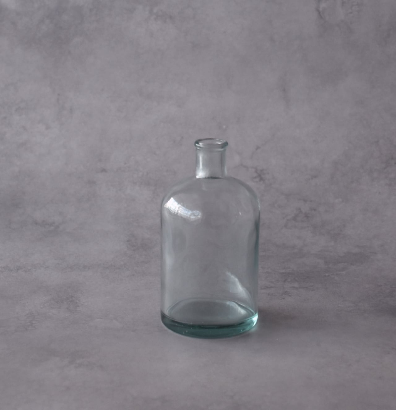 お花を生けているのは、淡いブルーをまとった爽やかなガラスボトル。