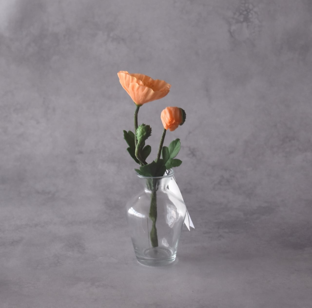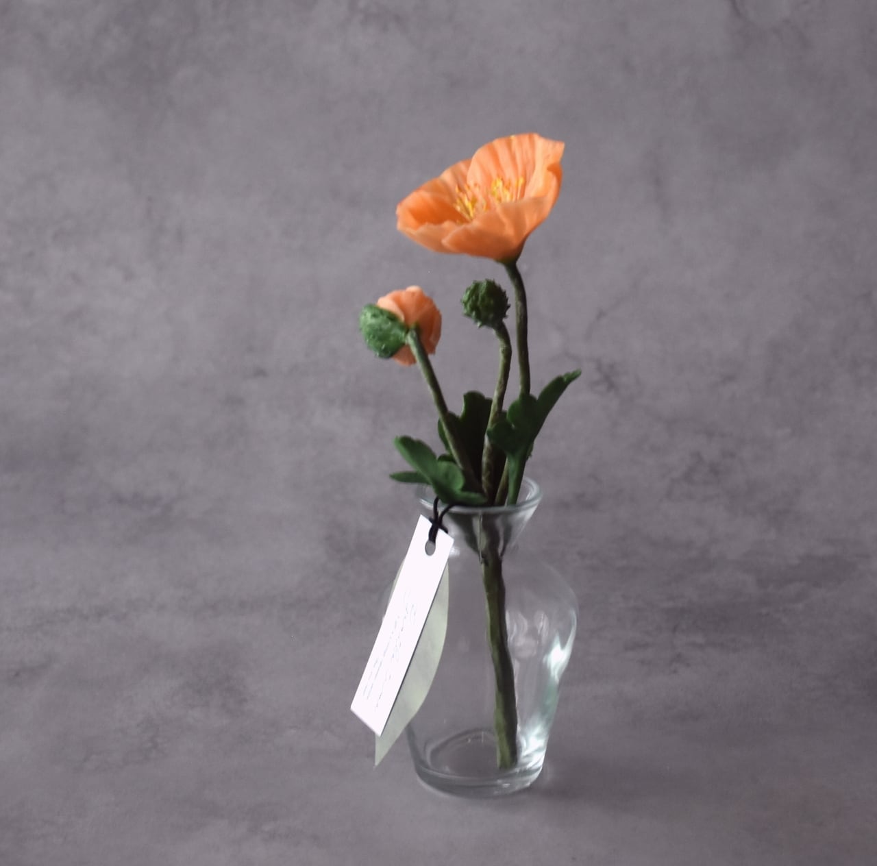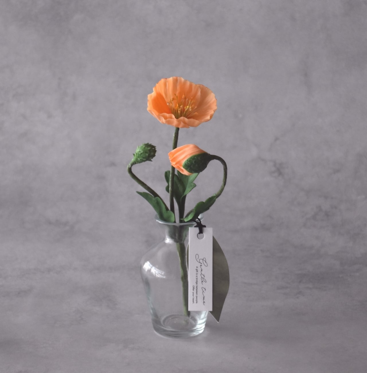 ◆ポピーの クレイフラワー・オレンジ|ガラスボトル|枯れない花・インテリア・ギフトP1431