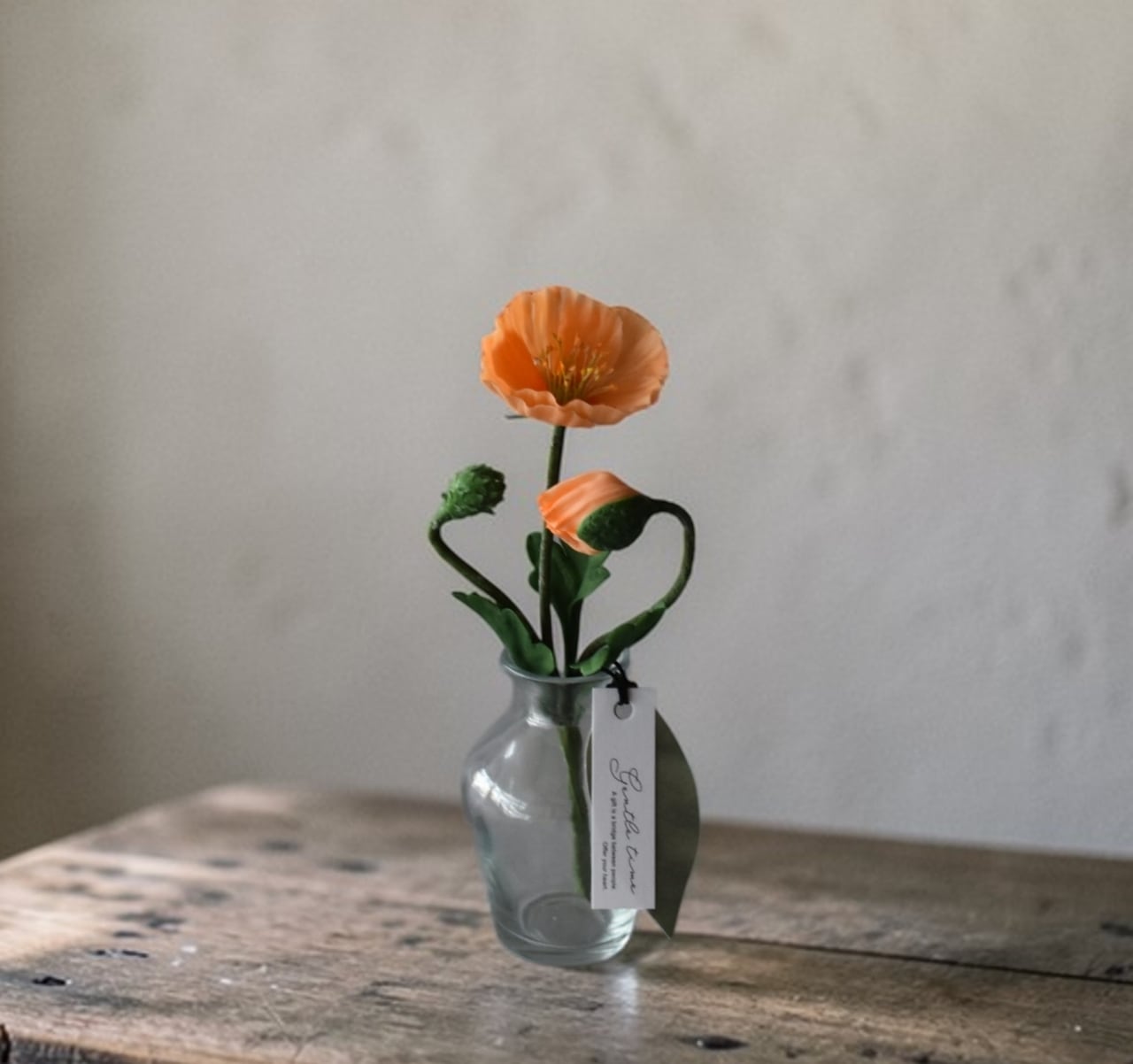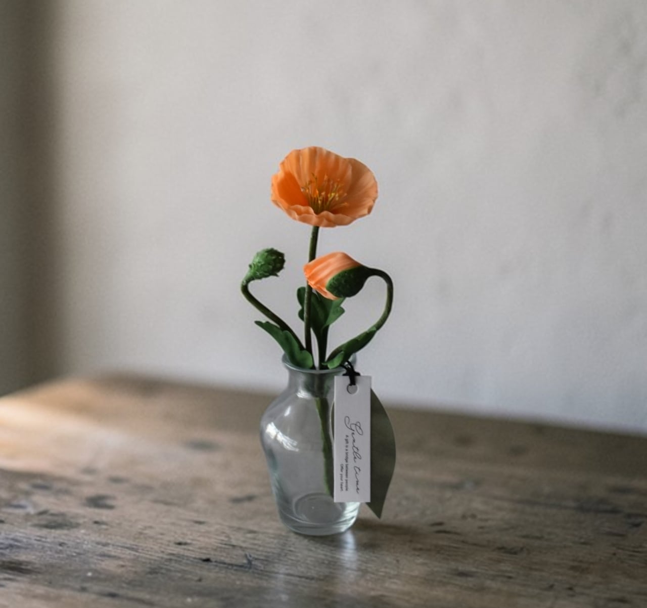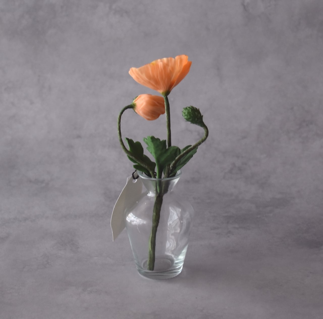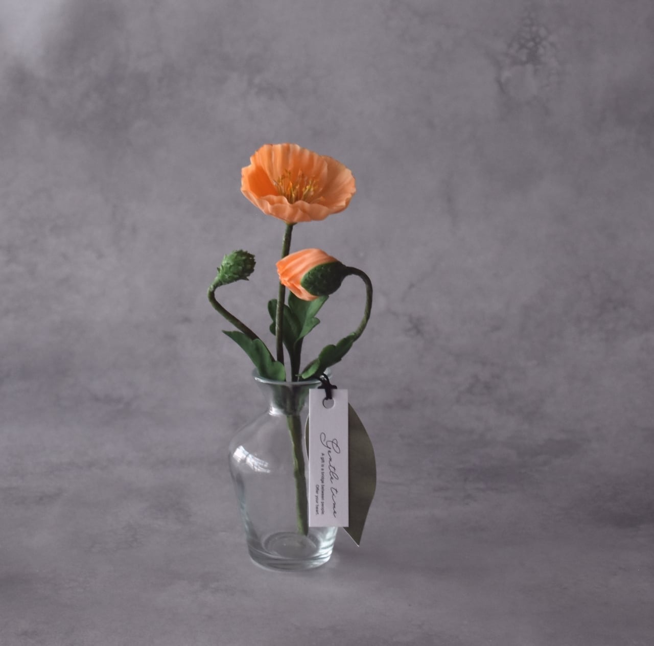 ◆ポピーの クレイフラワー・オレンジ|ガラスボトル|枯れない花・インテリア・ギフトP1431