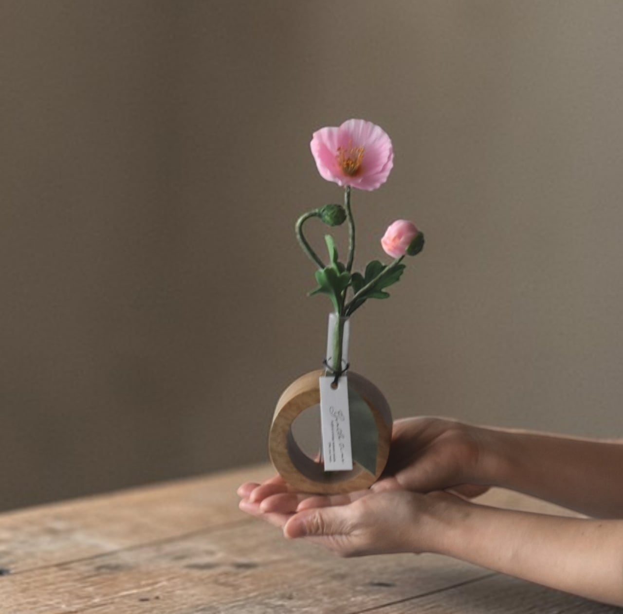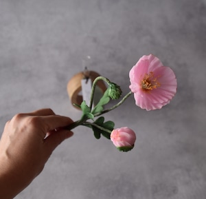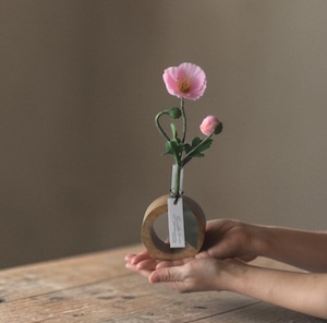 ◆ポピーの クレイフラワー|切り株ベース|枯れない花・インテリア・ギフトP1434
