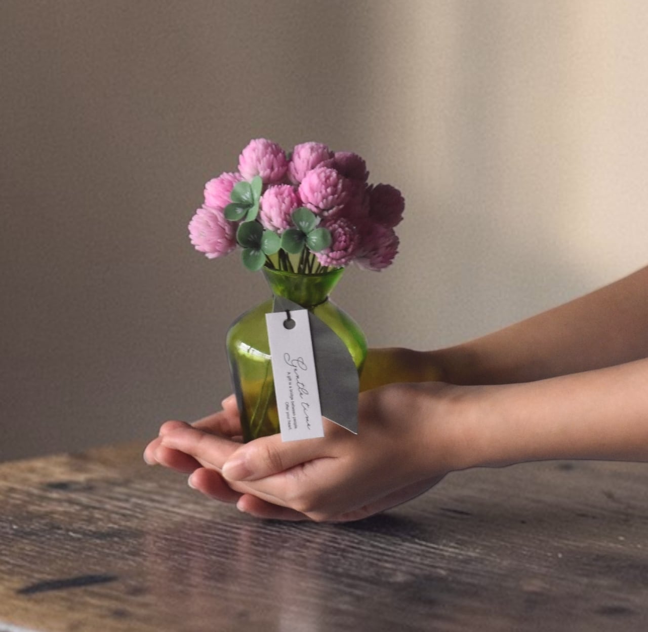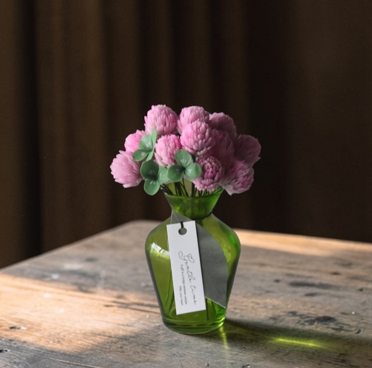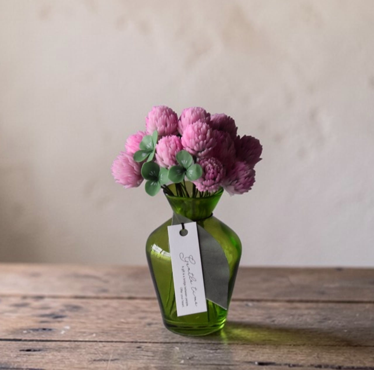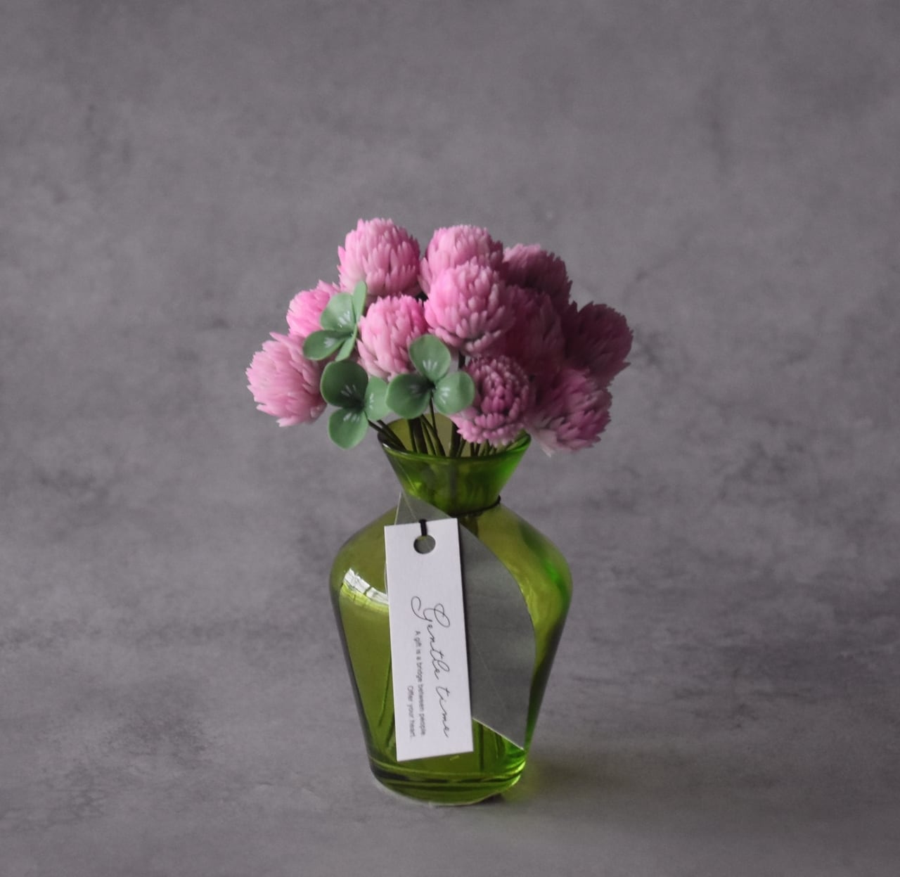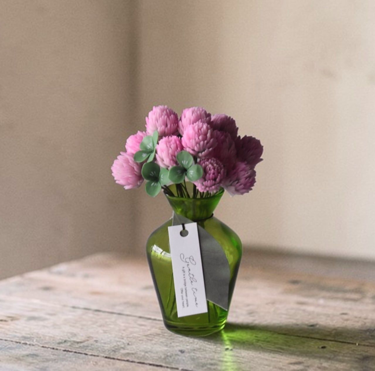 すっきりとしたシンプルなフォルムが、モモイロシロツメクサの可愛く温かい印象を引き立てます。
