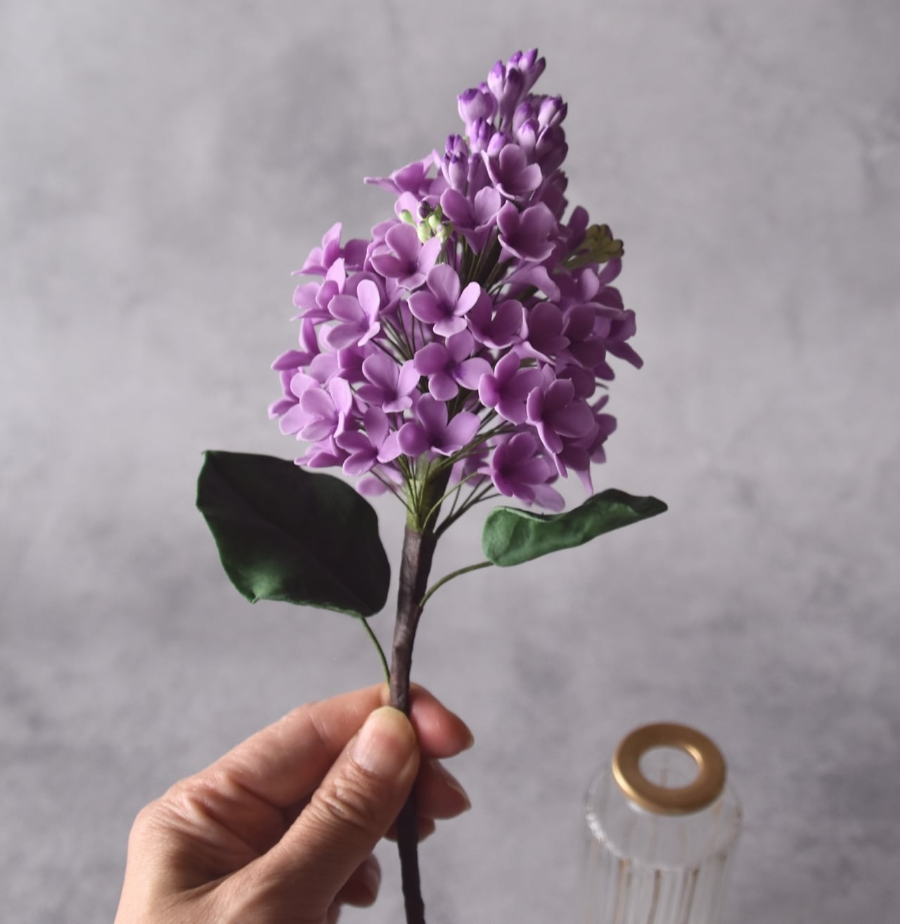 ◆ライラックのクレイフラワー◆枯れない花・ラッキーライラック入り・ハンドメイド一点もの パープル R1152