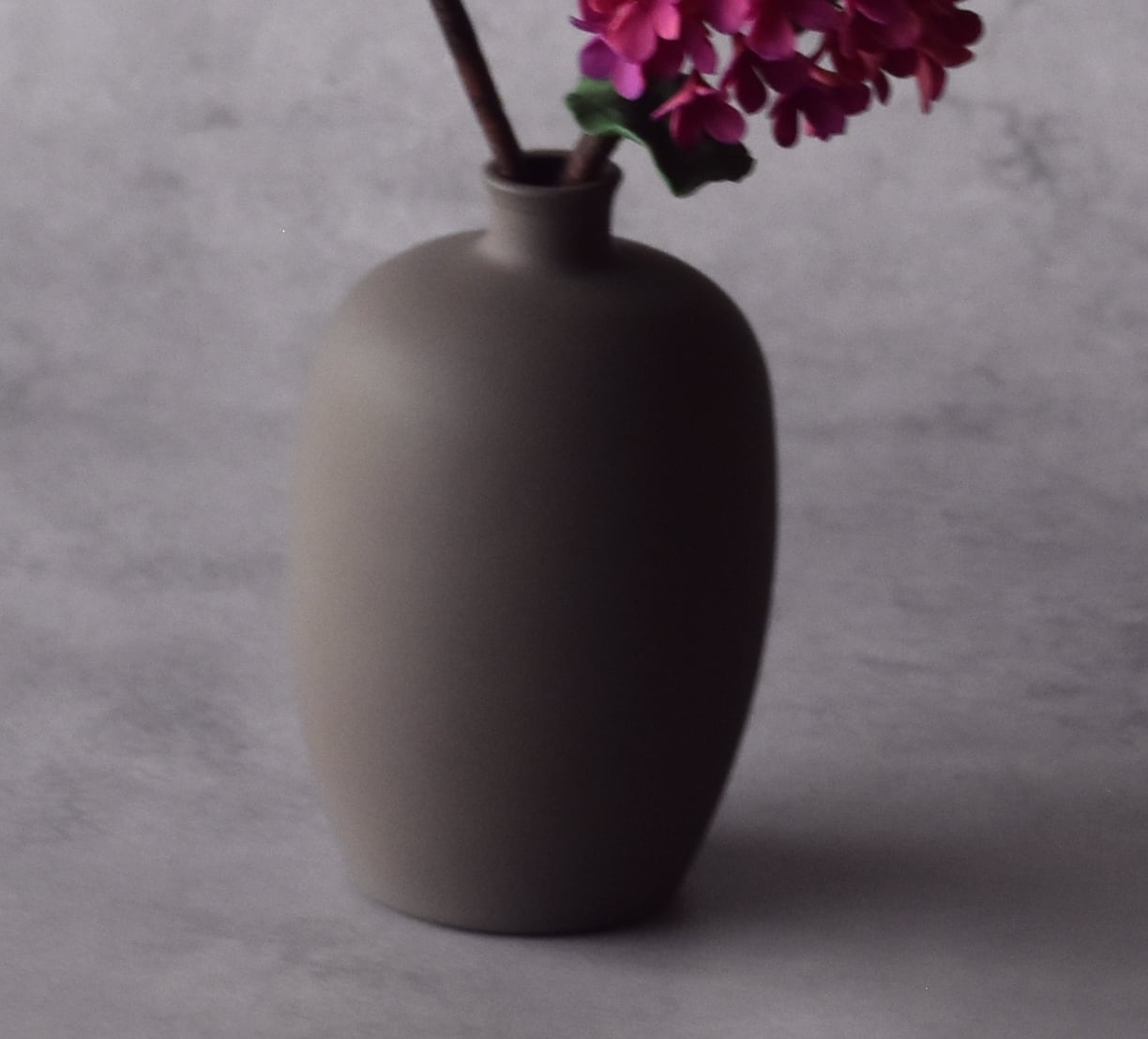 お花を生けているのは、シンプルなセラミック風のフラワーボトル。