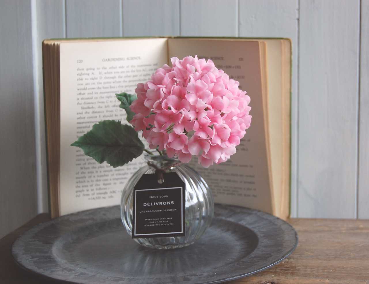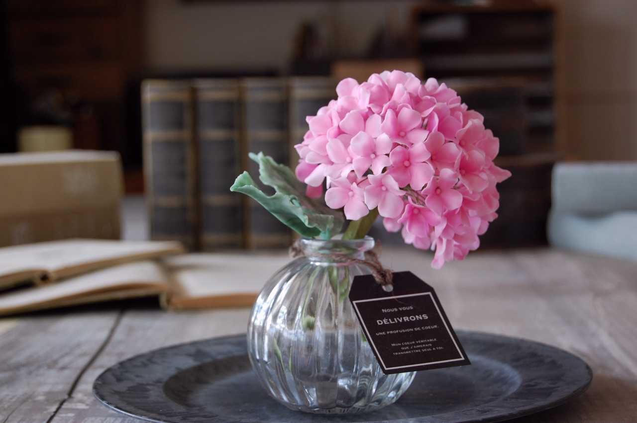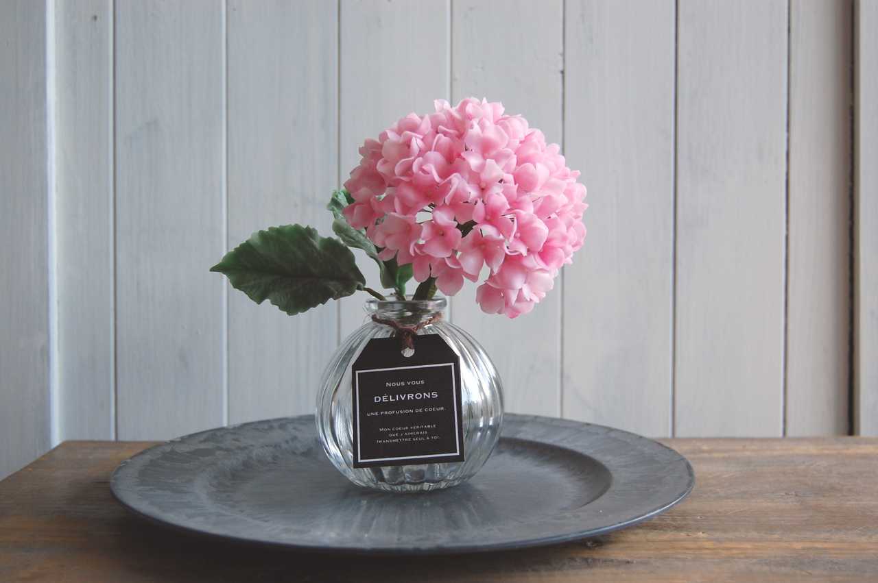 紫陽花をぽってりガラスボトルに飾って・・・ピンク 高さ約16センチ A393