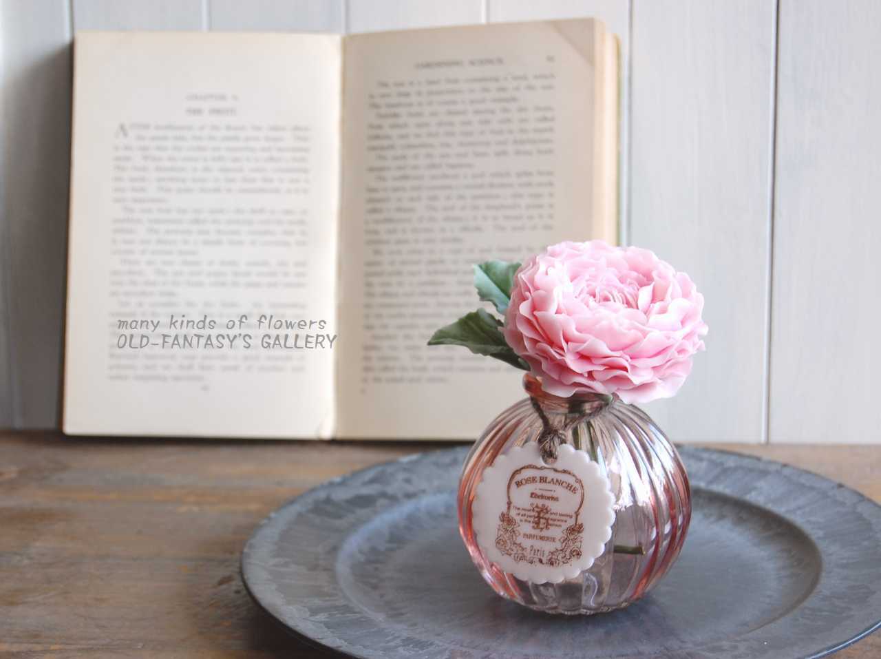 イングリッシュローズをぽってりガラスボトル(ピンクボトル)に飾って・・・薔薇 ピンク 高さ約13センチ B404