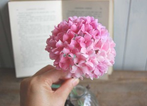 淡いお色のはなびらがとってもキュートで、まるで本物の紫陽花のようです。