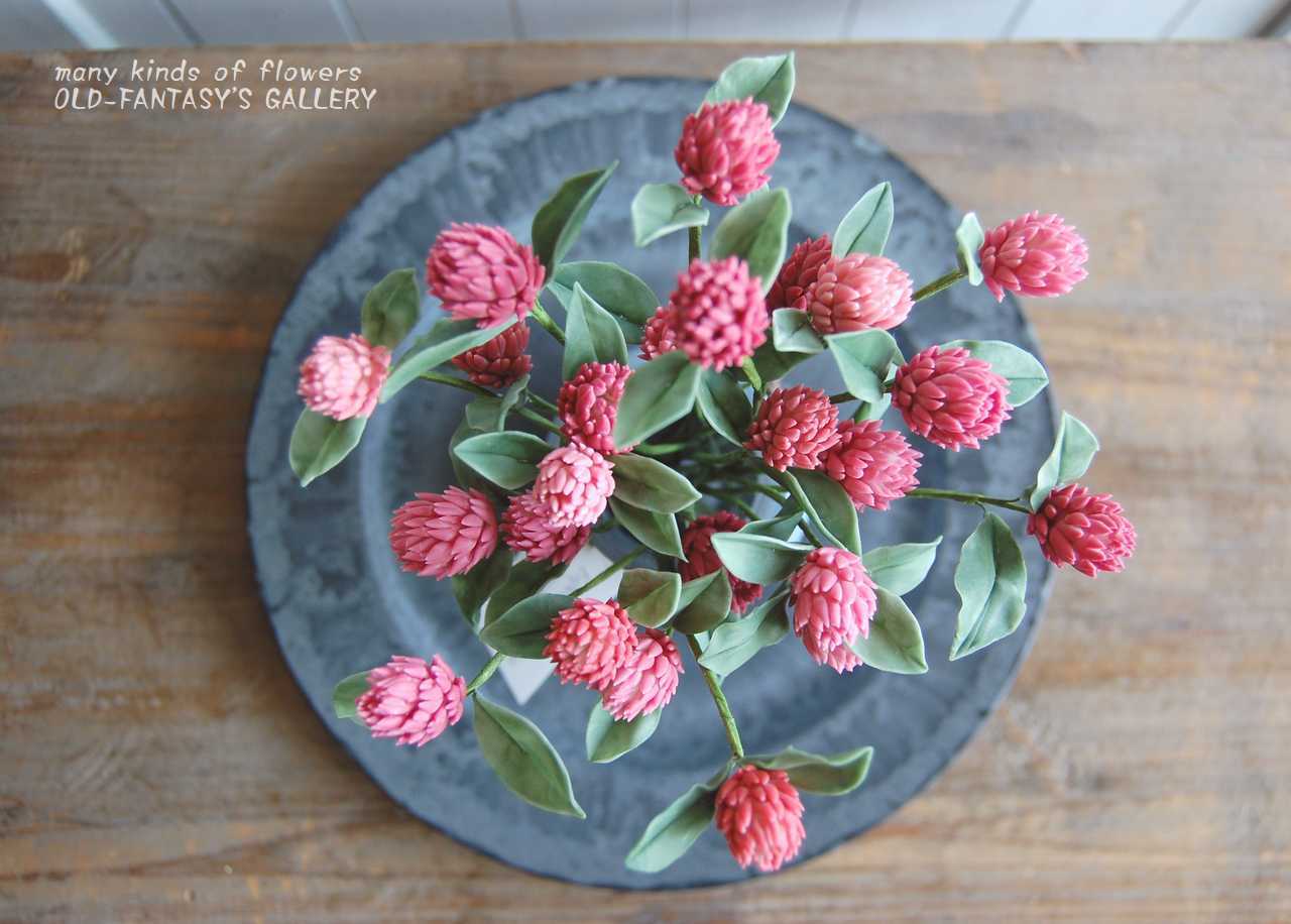 ●千日紅・ストロベリーフィールズや葉っぱは最高級彫塑用ネンドで手作りしています。
