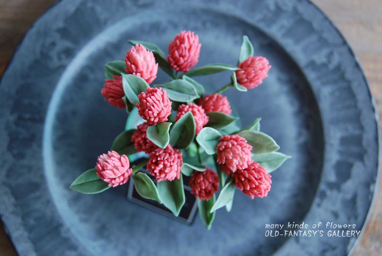 *千日紅・ストロベリーフィールズや葉っぱは最高級彫塑用ネンドで手作りしています。