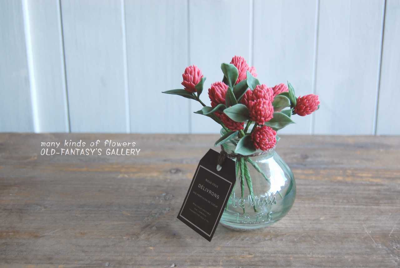 千日紅・ストロベリーフィールズをガラスベースに飾って・・・約12センチ S408