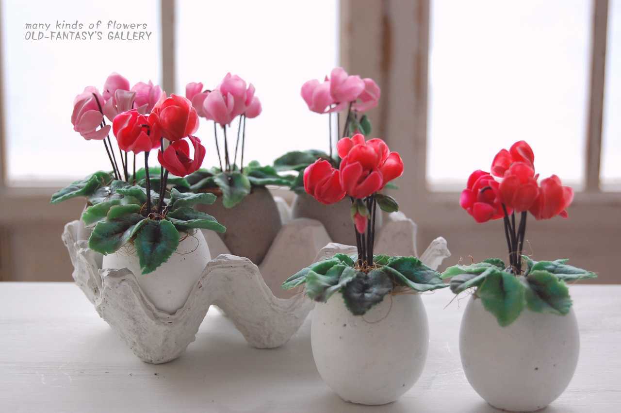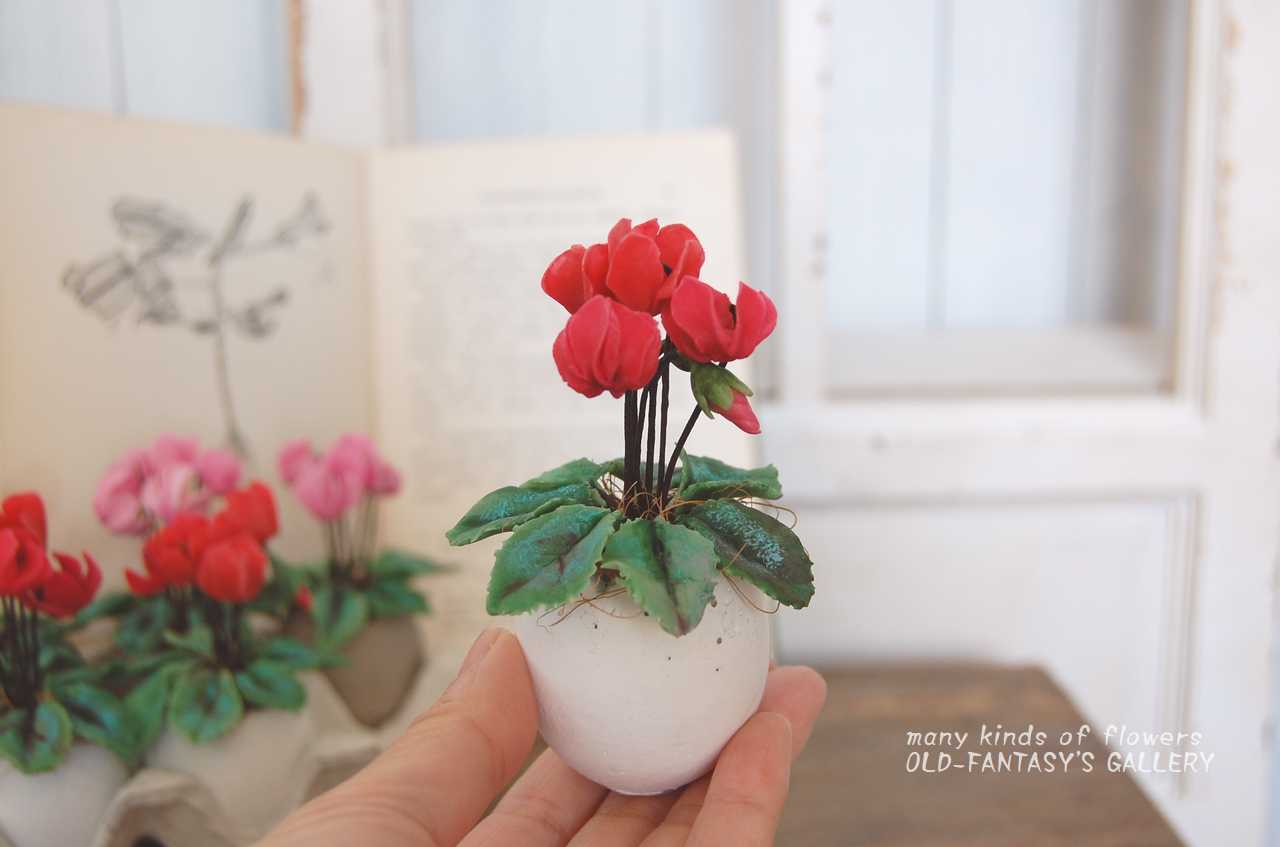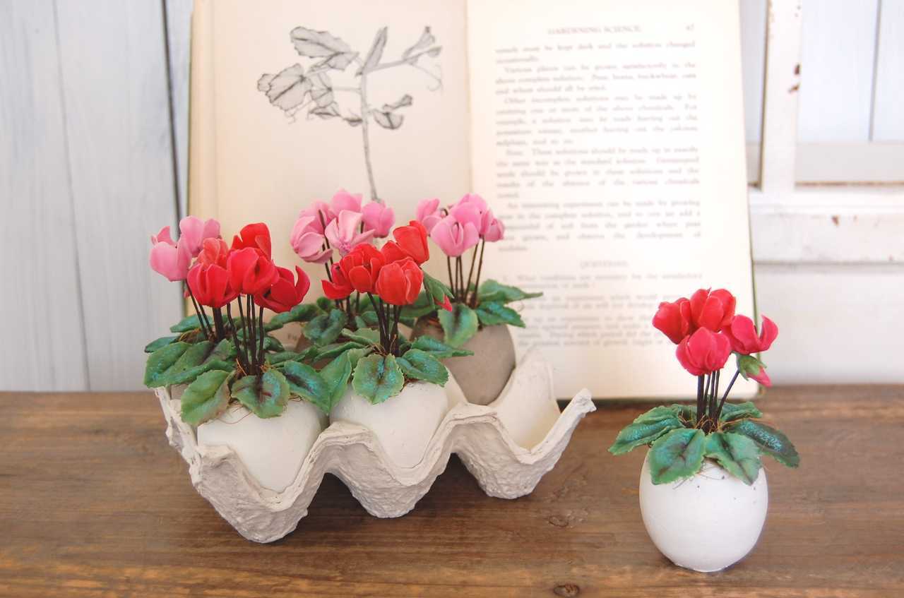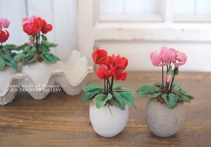 【粘土のお花】 小さな小さなシクラメン たまごセメントポット A419