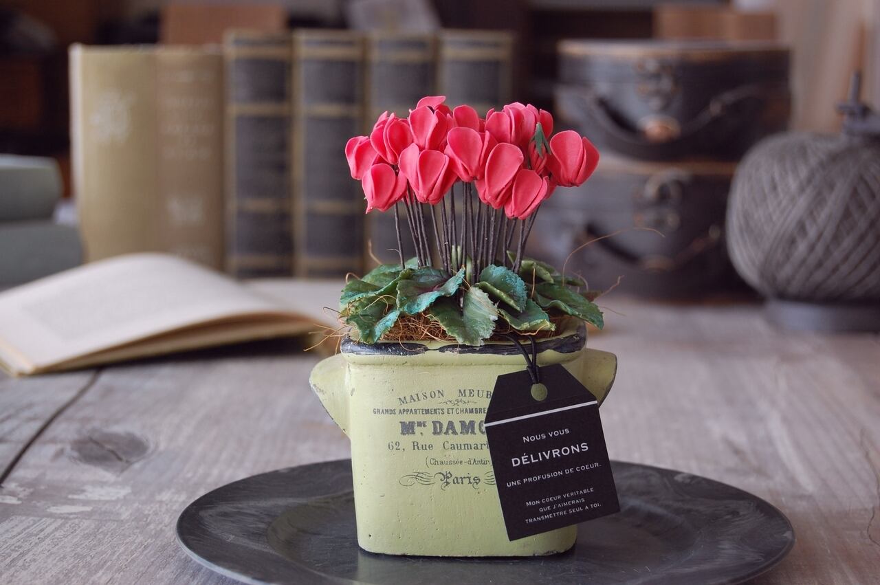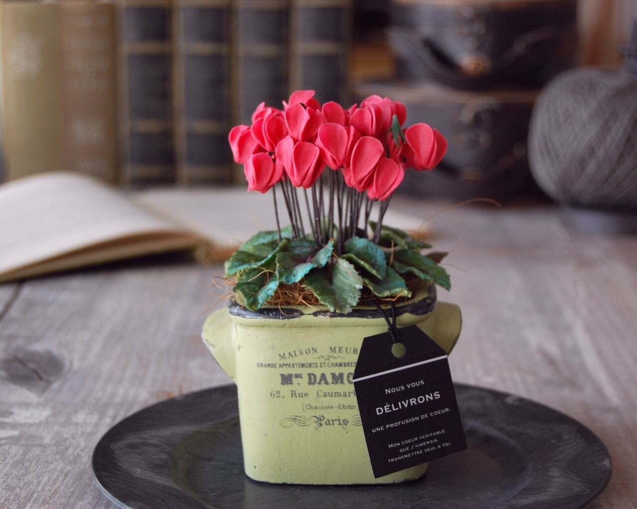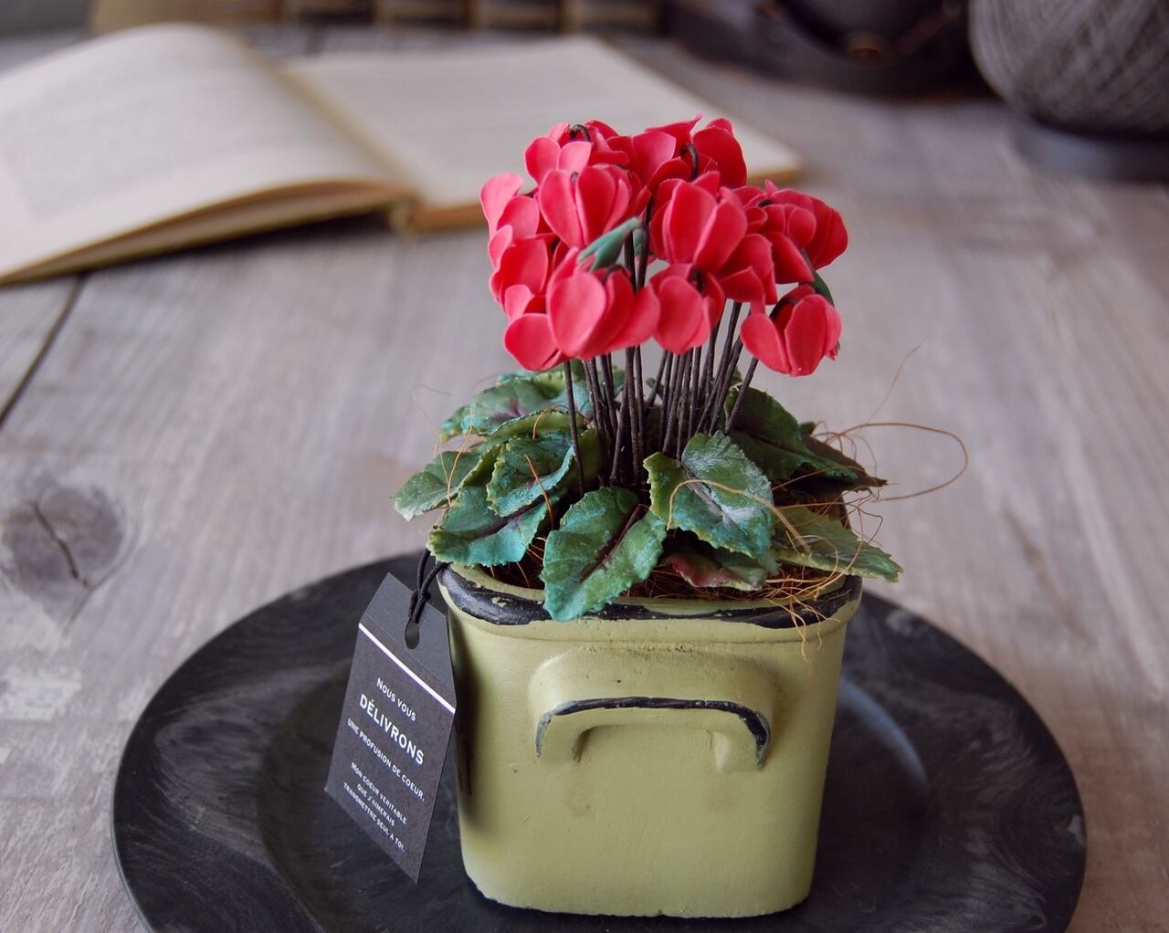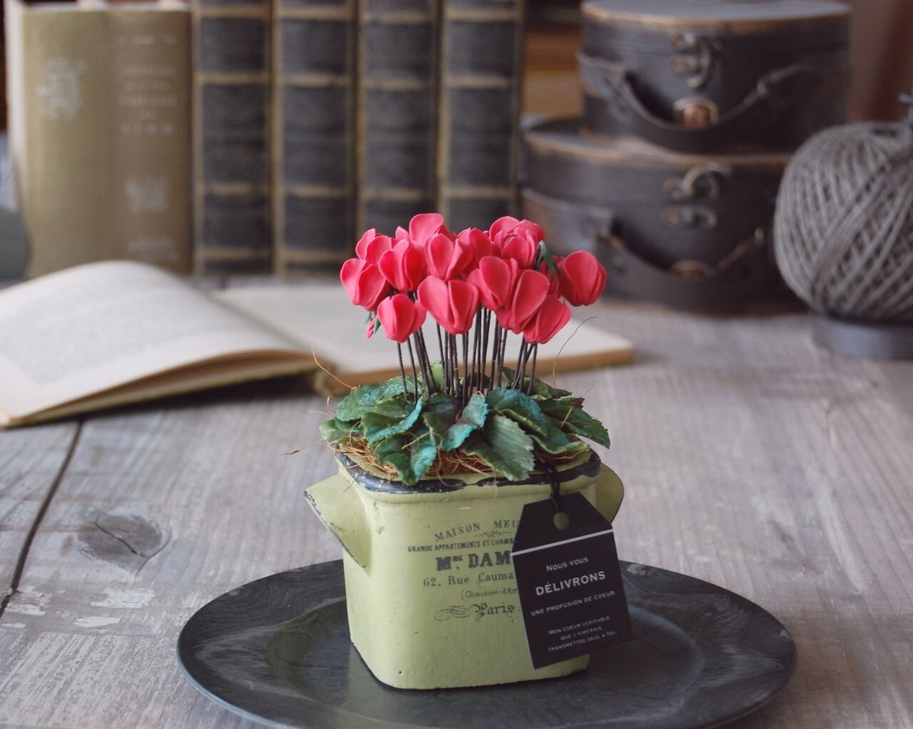 ◆粘土のお花◆ 小さなシクラメン アンティークポット… S420