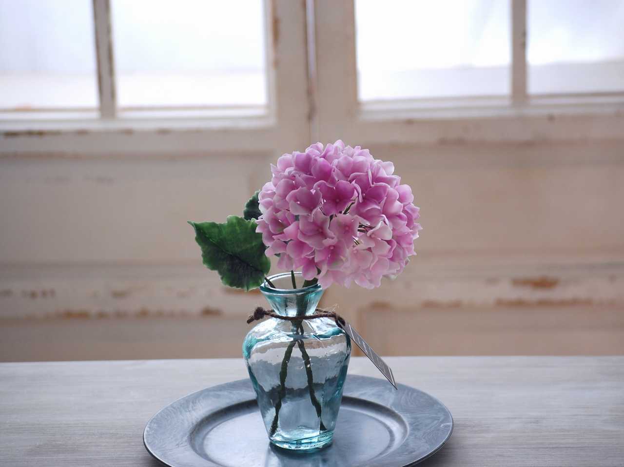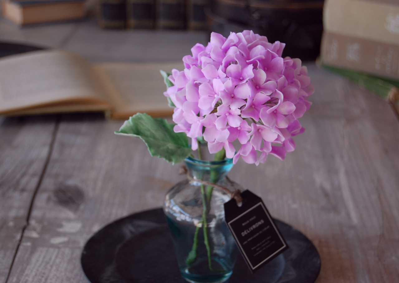 ●紫陽花は一輪挿しにするとお花部分が少し重くなるのが特徴のお花です。