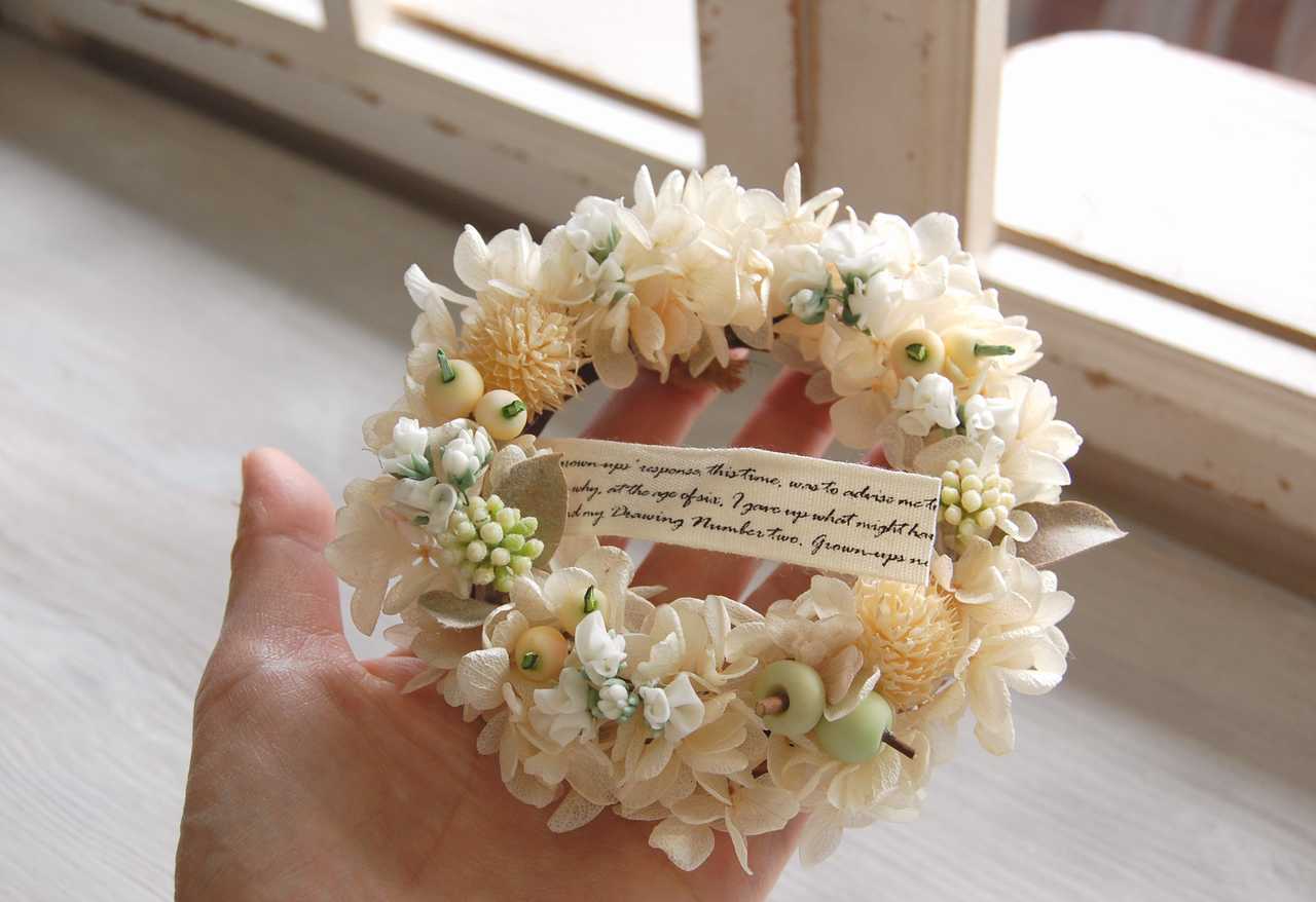 ●プリザーブドフラワーの紫陽花はアンティーク感のあるオフホワイトです。