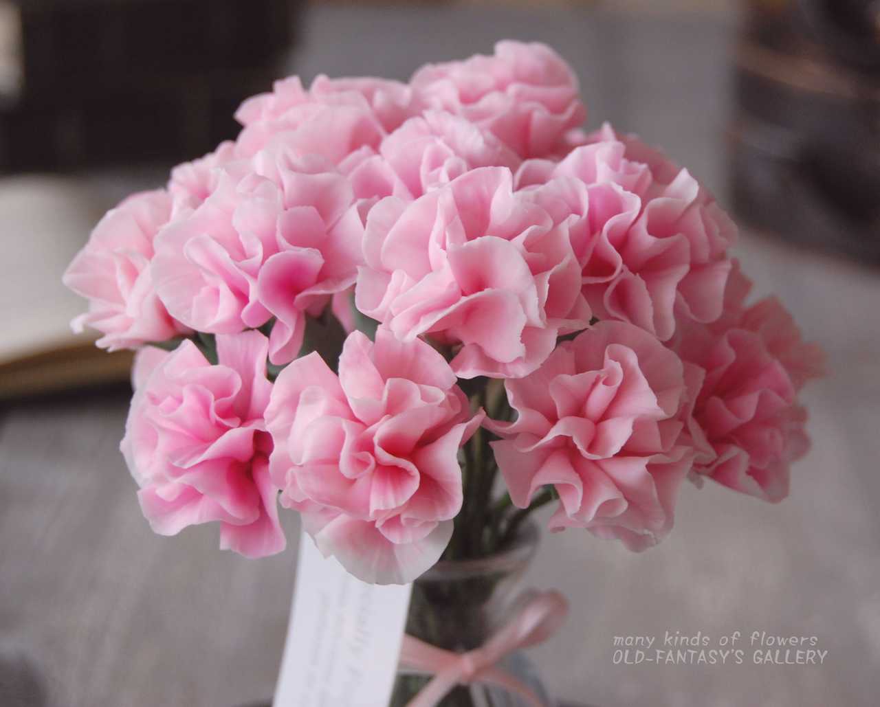 お花いっぱい♪ ピンクカーネーション ガラスボトル k452