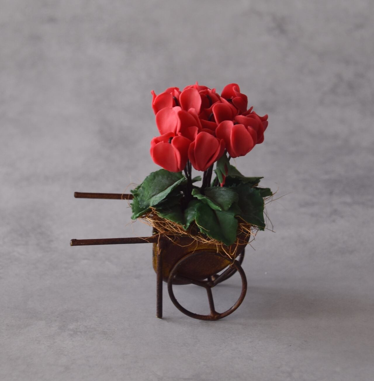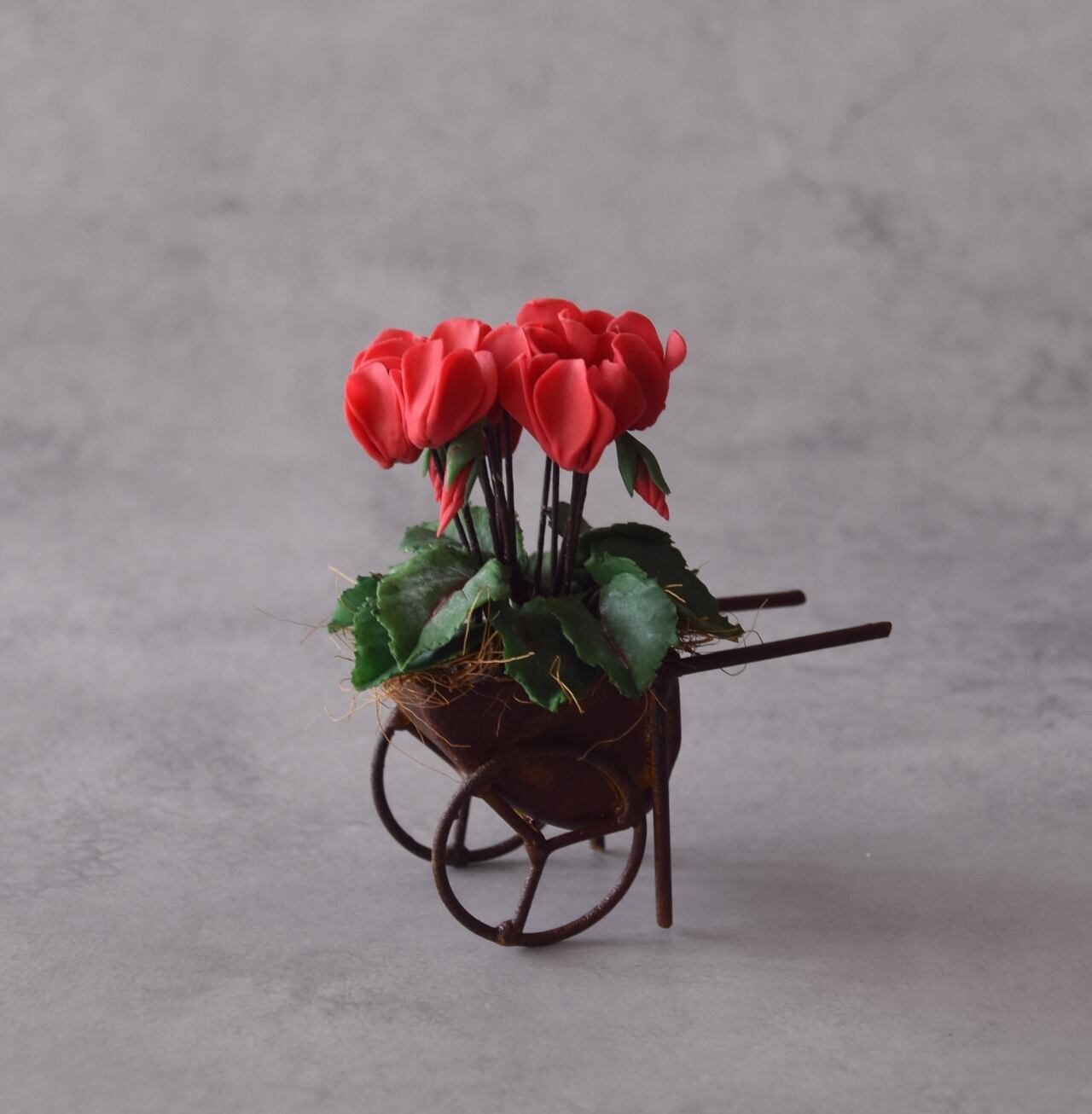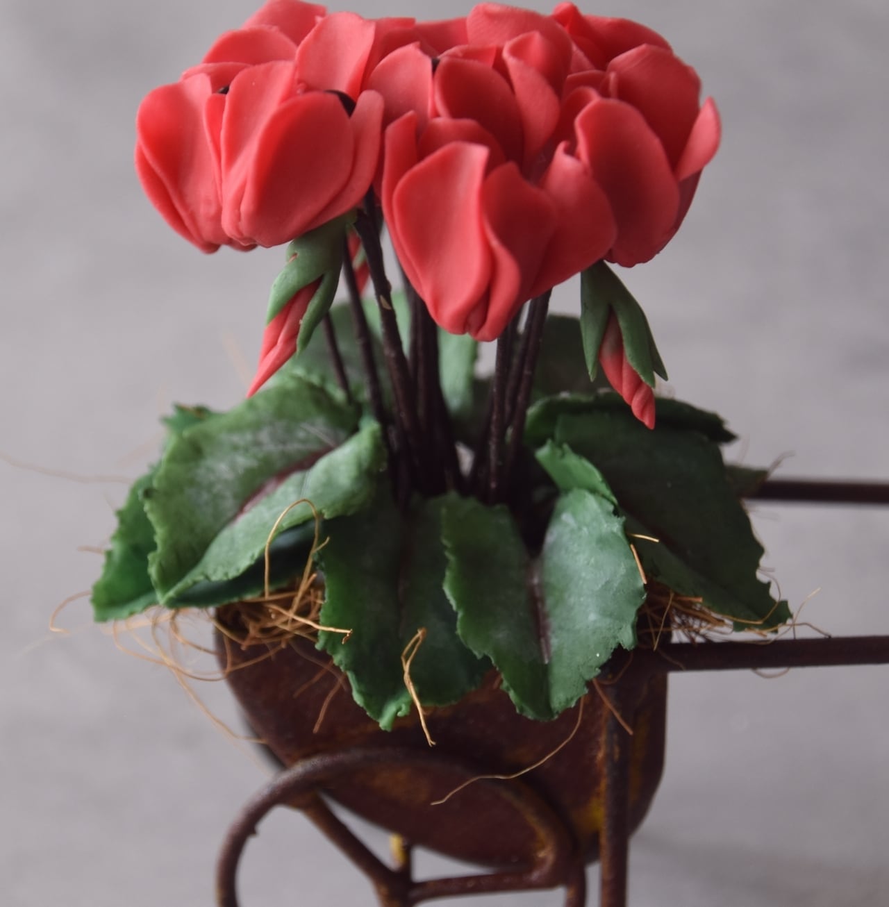 ◆粘土のお花◆ 小さなシクラメン アンティーク ブリキ車輪… S1327
