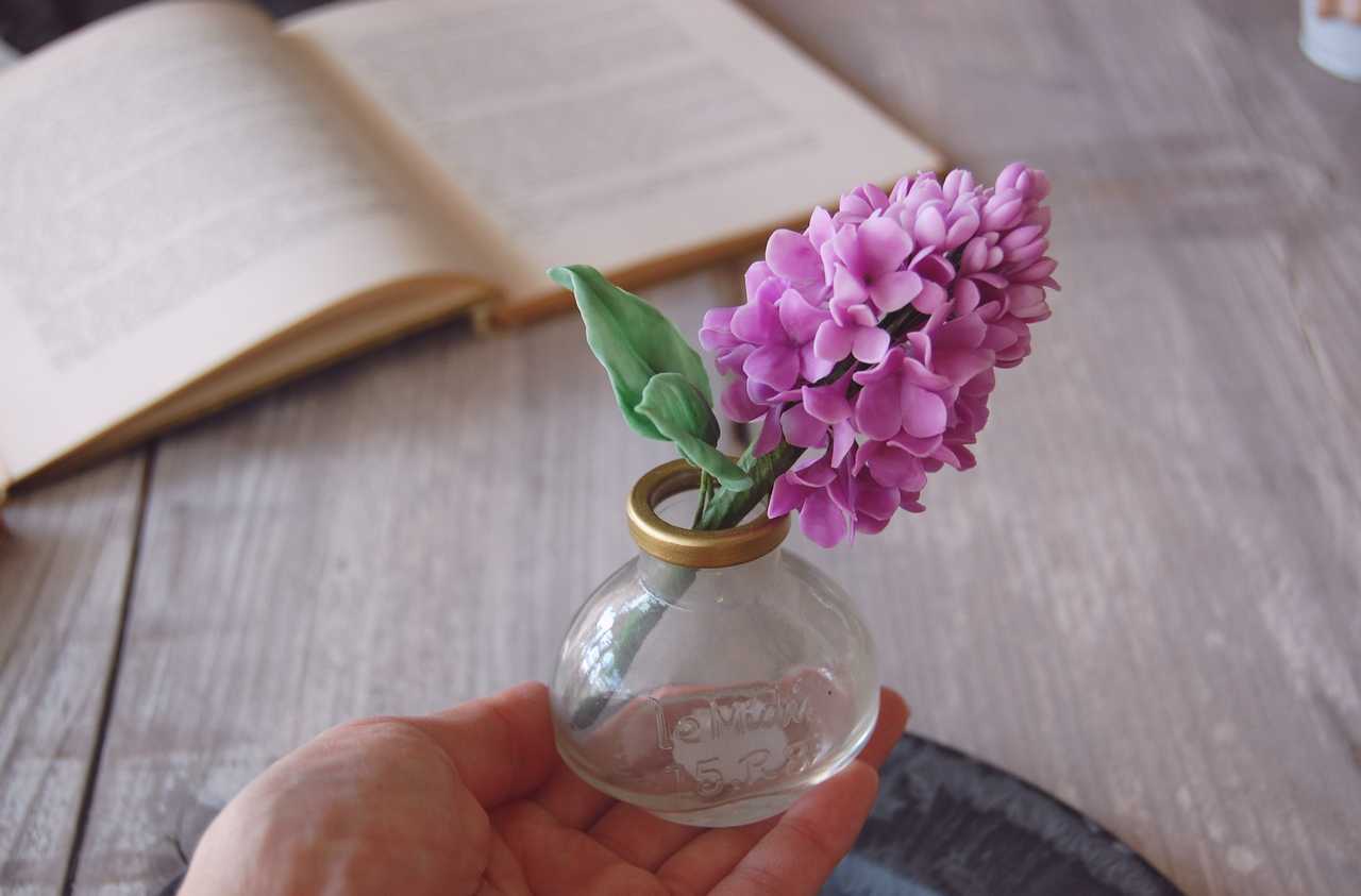 ラッキーライラック♡ ミニ ホラリング・フラットボトルに飾って・・・ パープル 高さ約11センチ R457