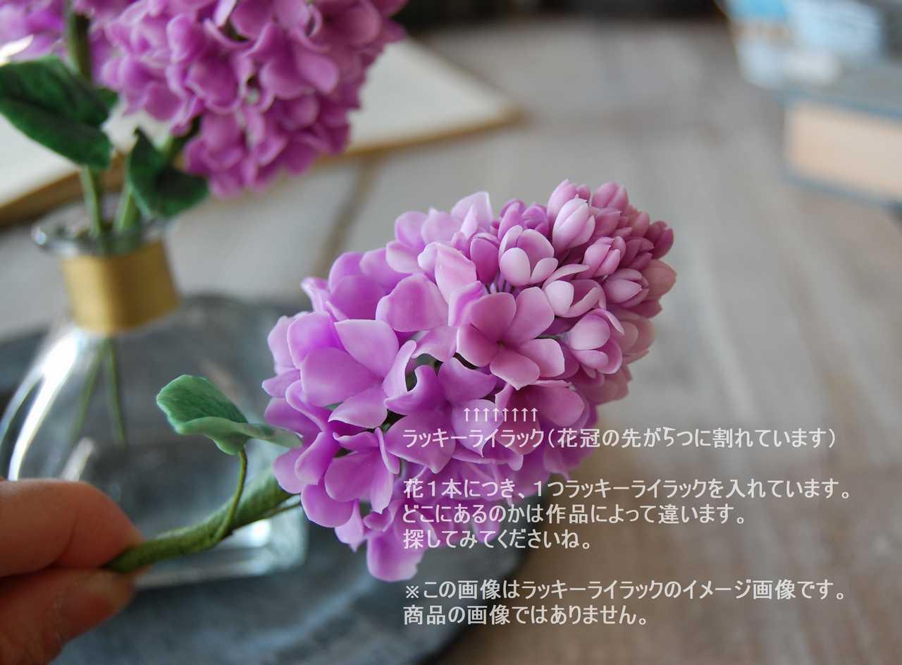 作品のライラックの中にラッキーライラックが一つ入っています。