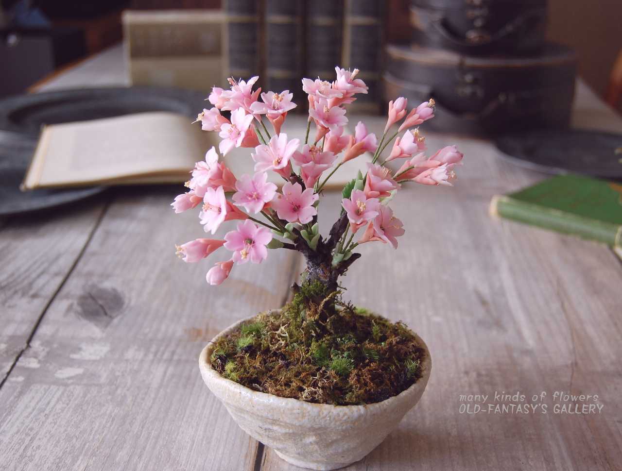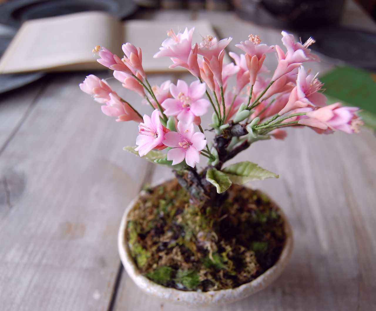 人気の桜盆栽を粘土で作りました。