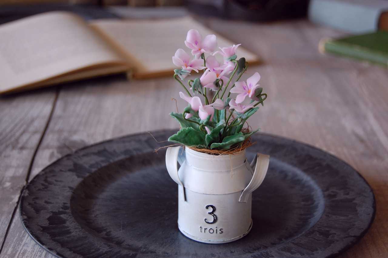 今回はスミレをアンティーク調のミルク缶ブリキポットに植え込みました。