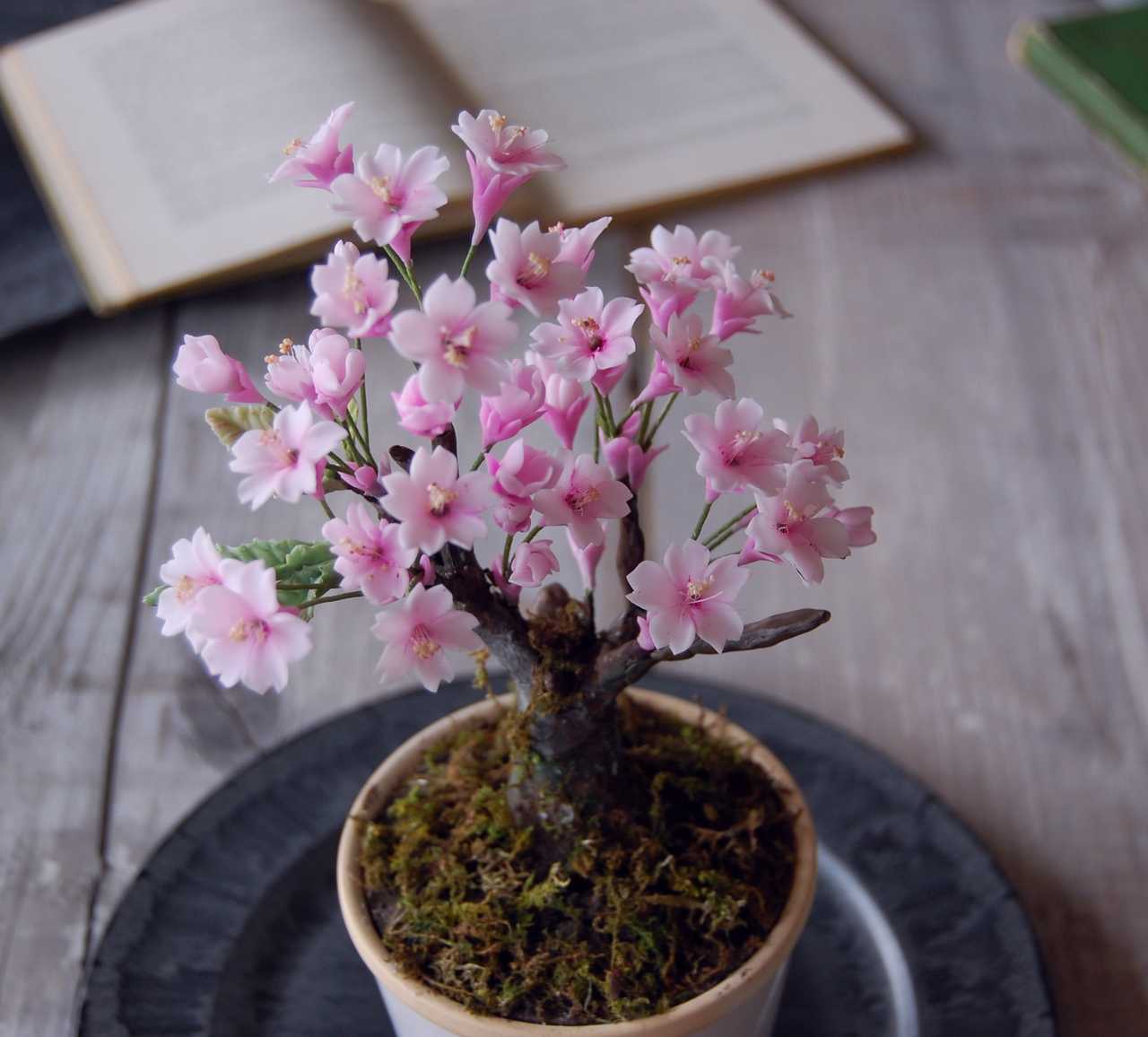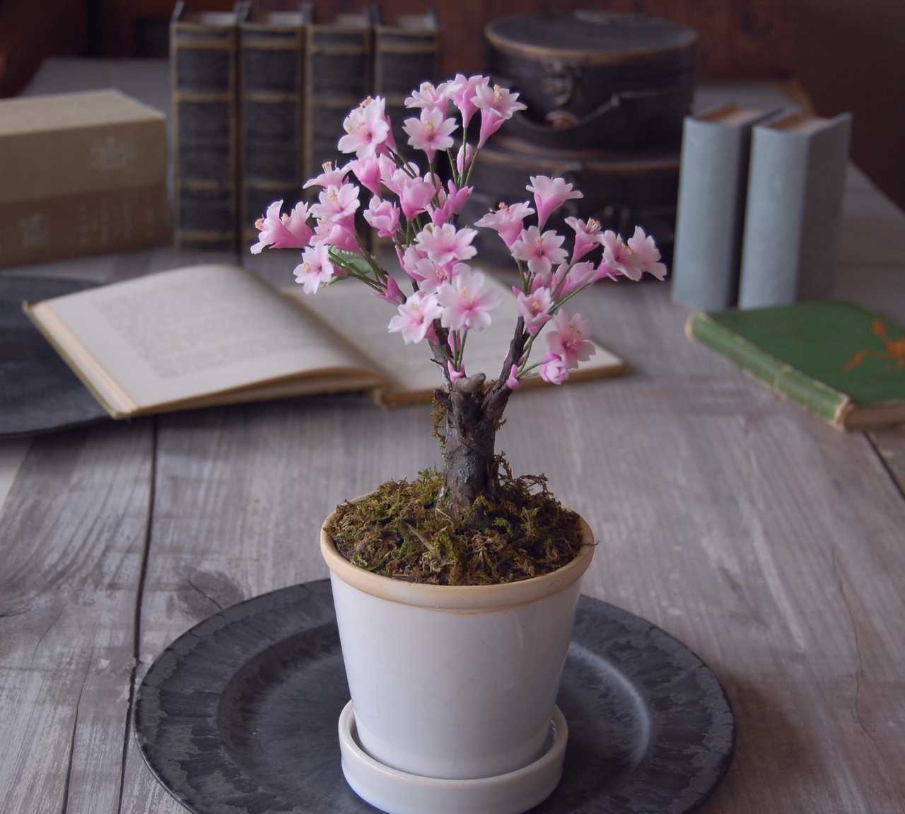 人気の桜盆栽を粘土で作りました。