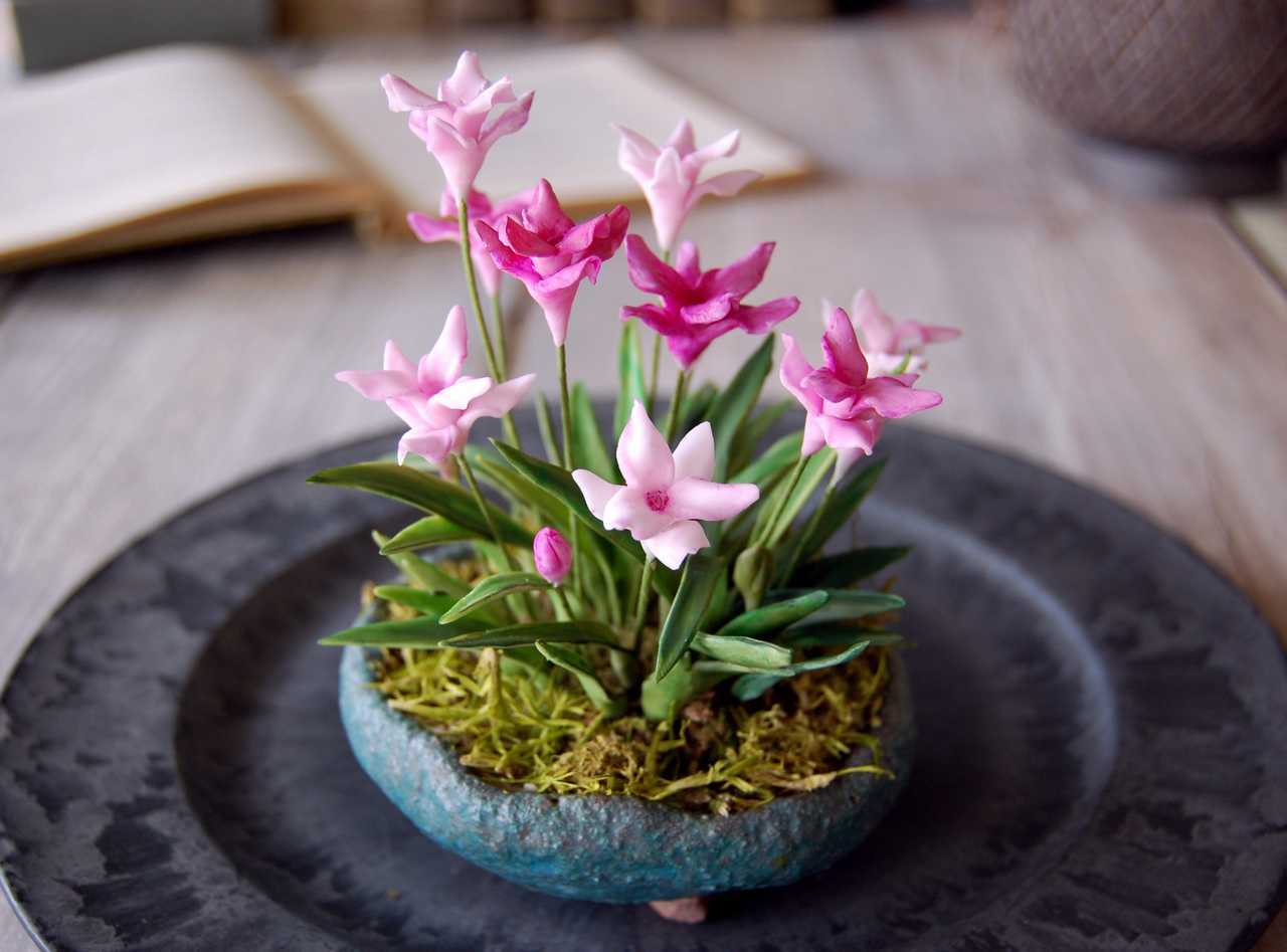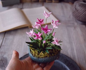 ●アッツザクラは花びらや葉っぱを粘土で一つ一つ最高級彫塑用ネンドで手作りしています。