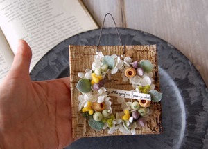 手のひらにのる小さな小さなリースで、お部屋の扉やリビングのアクセントなど、場所をとらずお飾り頂けます。