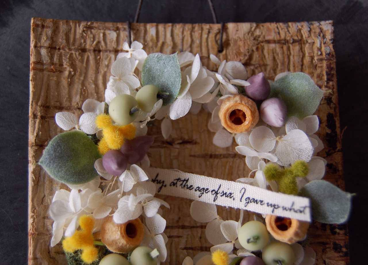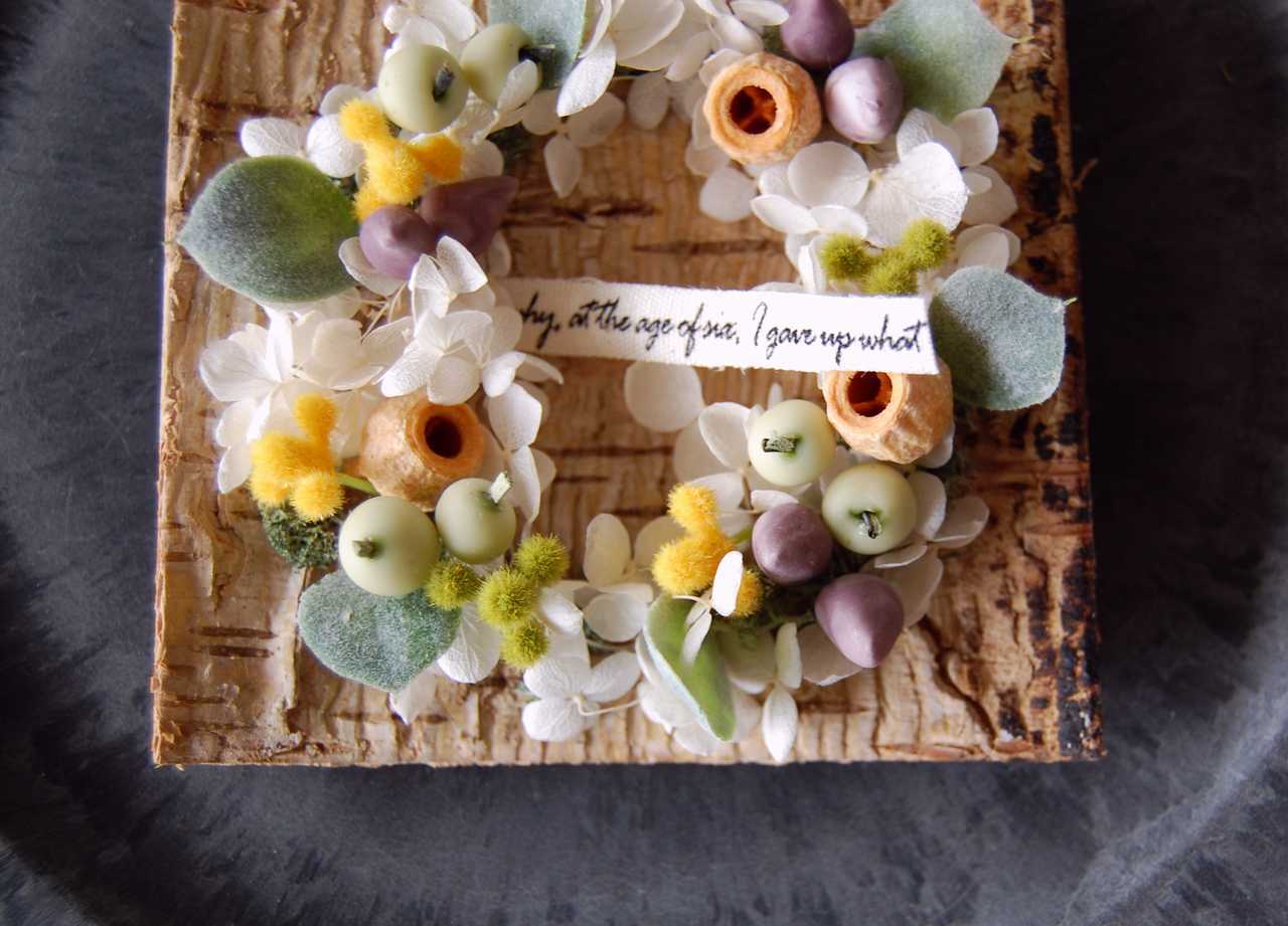 ●ドライフラワー・・・生花を乾燥させたもので花自身の自然の色です。時間の経過とともに色が変化します。非常にデリケートですので、お取り扱いには十分ご注意ください。