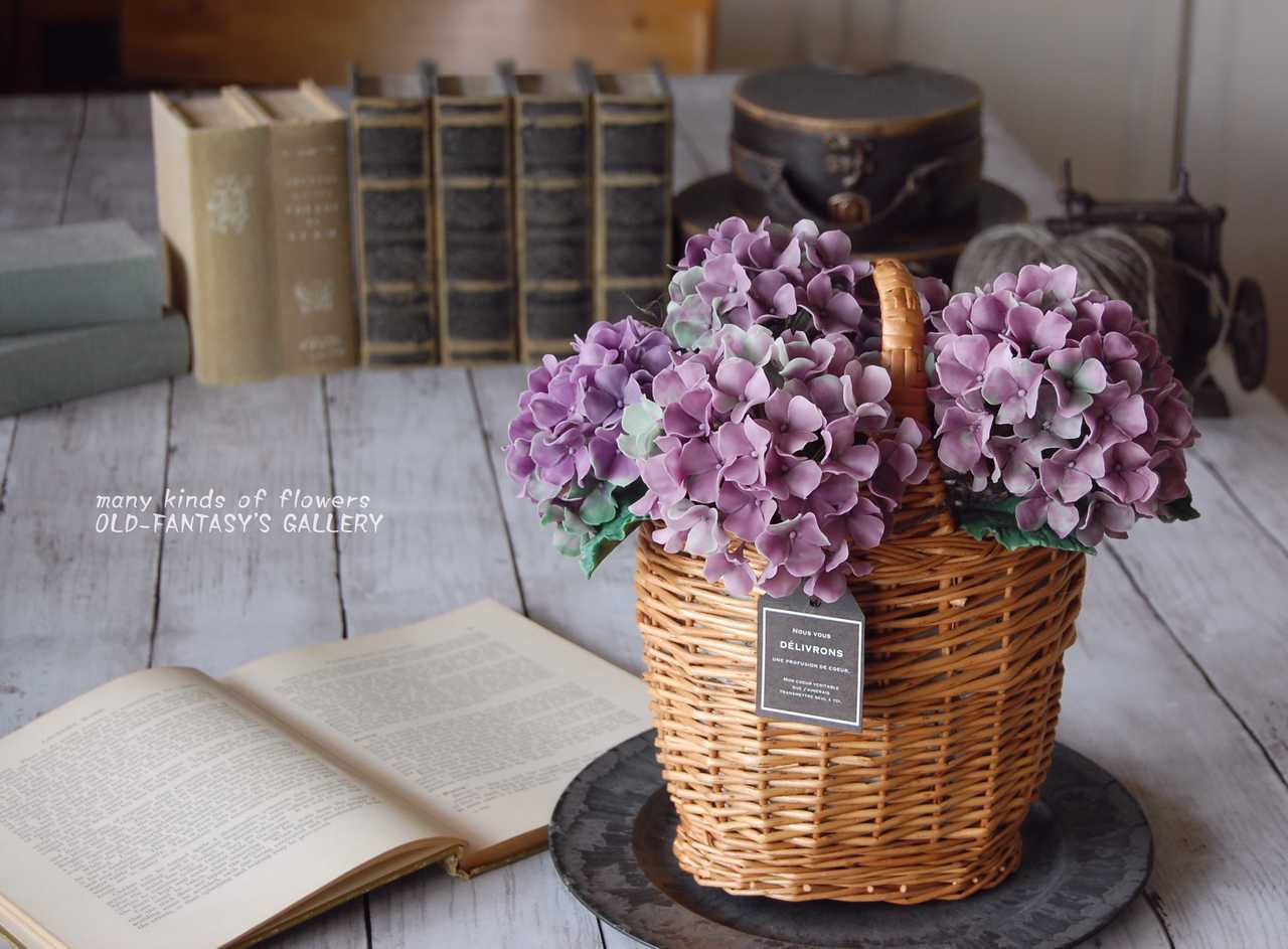 ブルーやピンクの装飾花の色合いがだんだんとアンティークカラーに変化していきます。