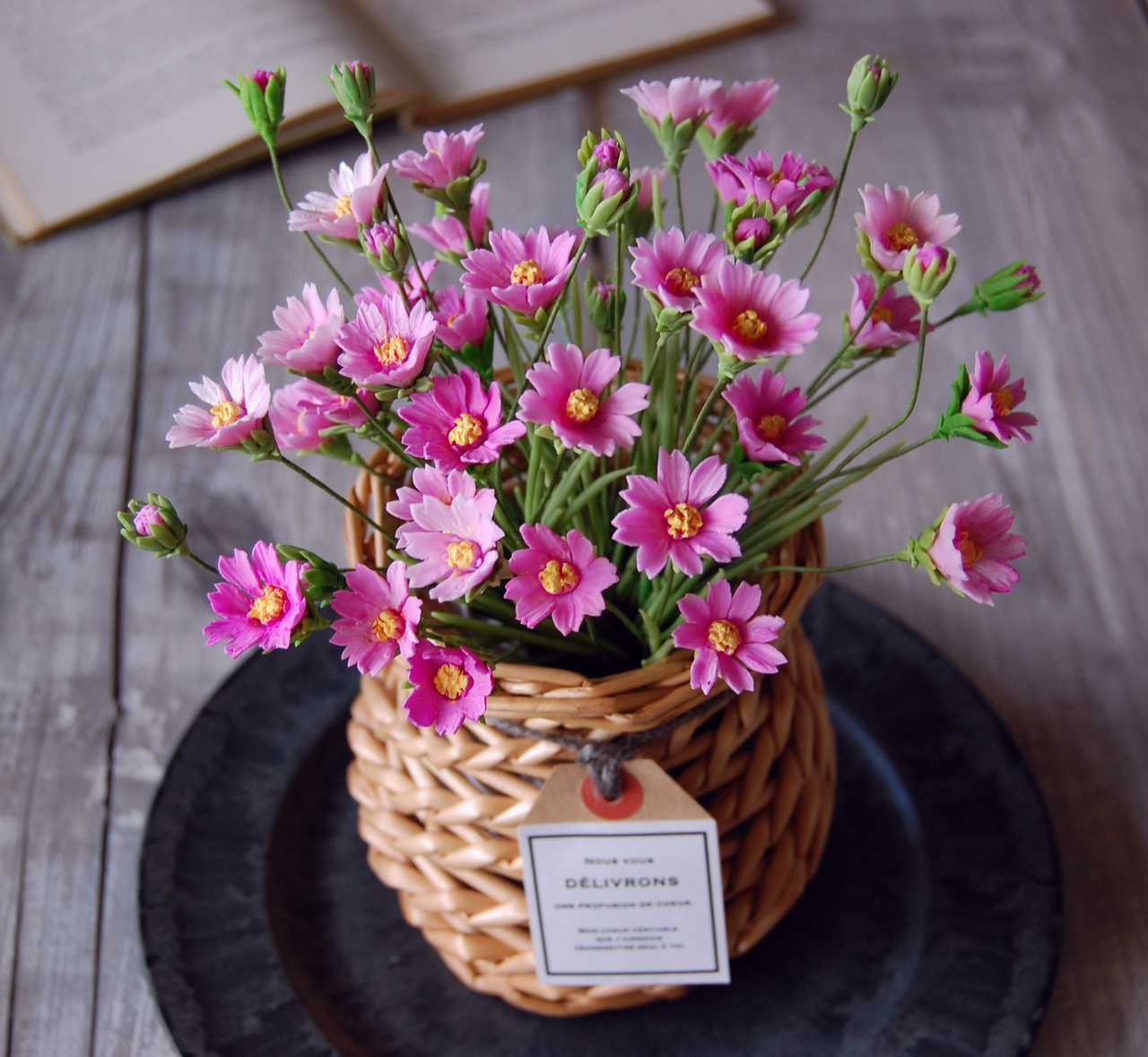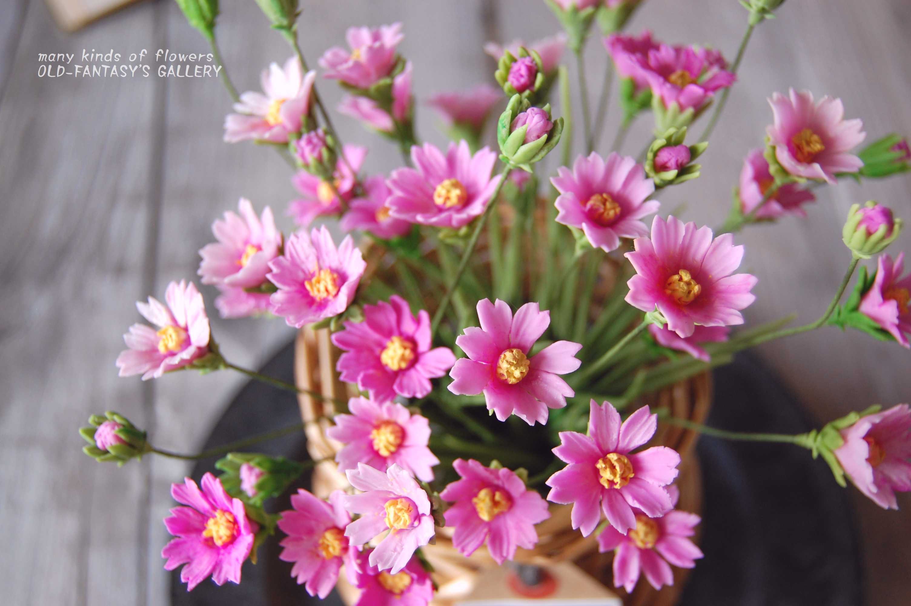 ◆粘土のお花◆(ヒメコスモス)ブラキカム・・・ピンク 高さ約24センチ B565