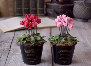 ◆粘土のお花◆ 小さなシクラメン ピンク グラックブリキカップ… S596