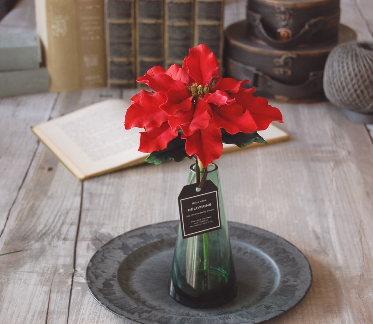ポインセチアの艶やかな赤色と緑は、そっと飾るだけでクリスマスに彩を与えてくれます。
