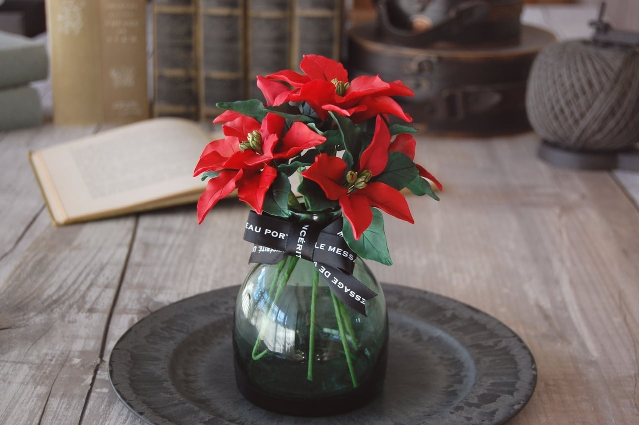 ◆粘土のお花◆ 小さなポインセチア・グリーンボトル… P605