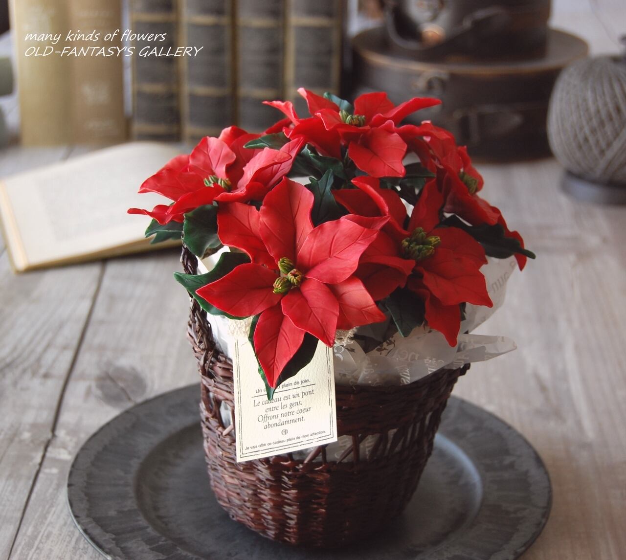 ◆粘土のお花◆ 小さなポインセチア・籠バッグ… P606