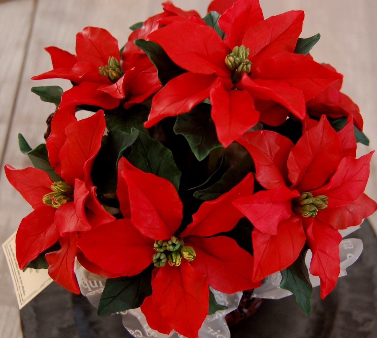 17世紀にメキシコに住み着いた宣教師たちが、クリスマスの季節に赤く色づいたポインセチアを見て、『清純なキリストの血』を表しているとして飾りに使ったといわれています。