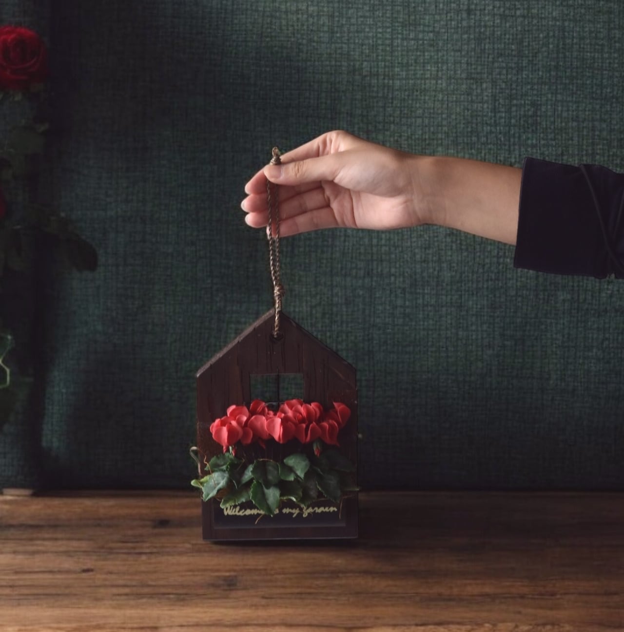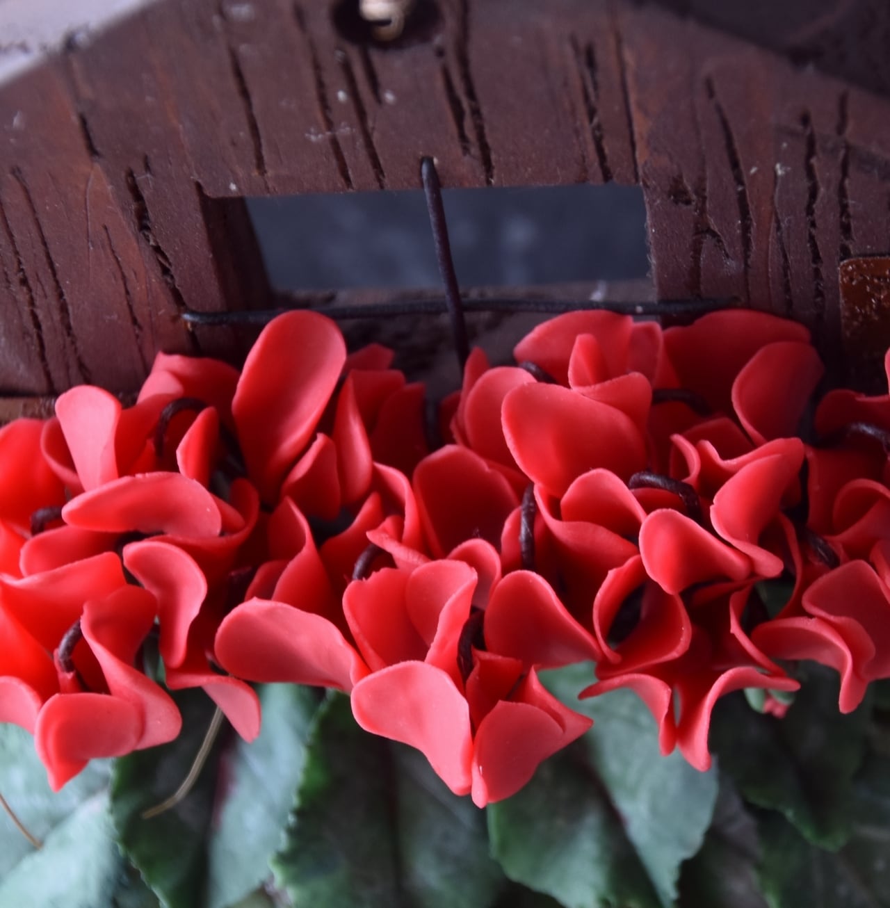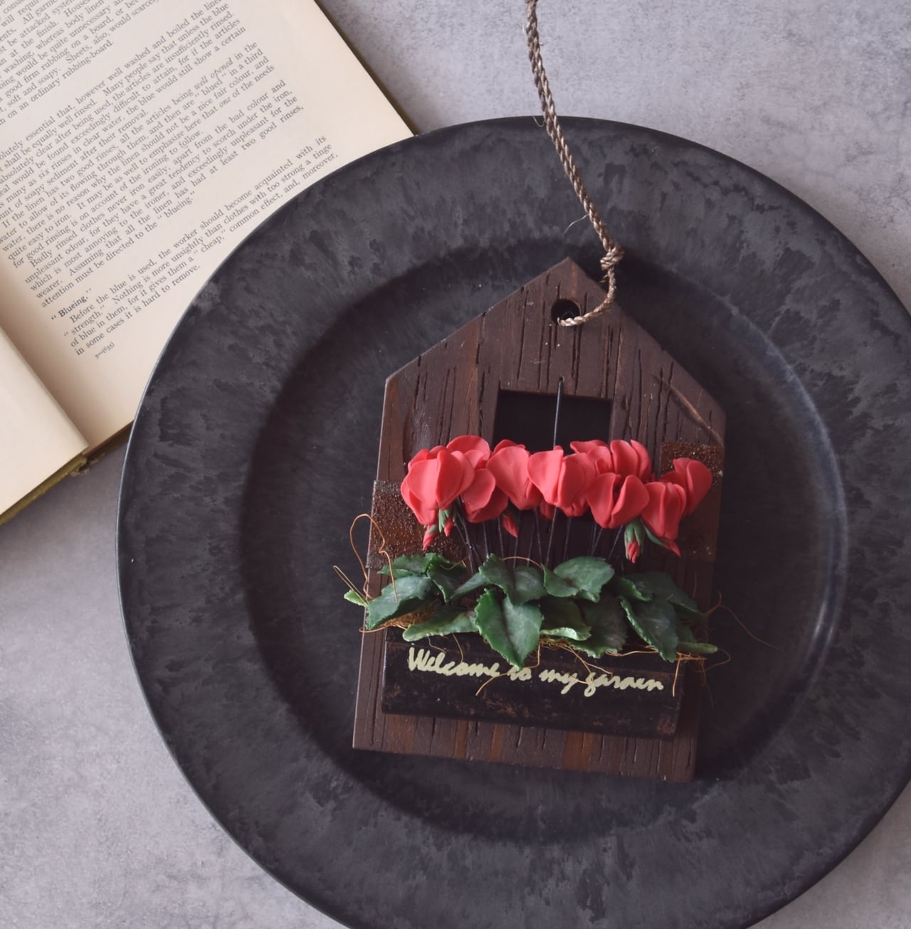 ◆粘土のお花◆ 小さなシクラメン ハンギングハウスミニプランターポット…S1326