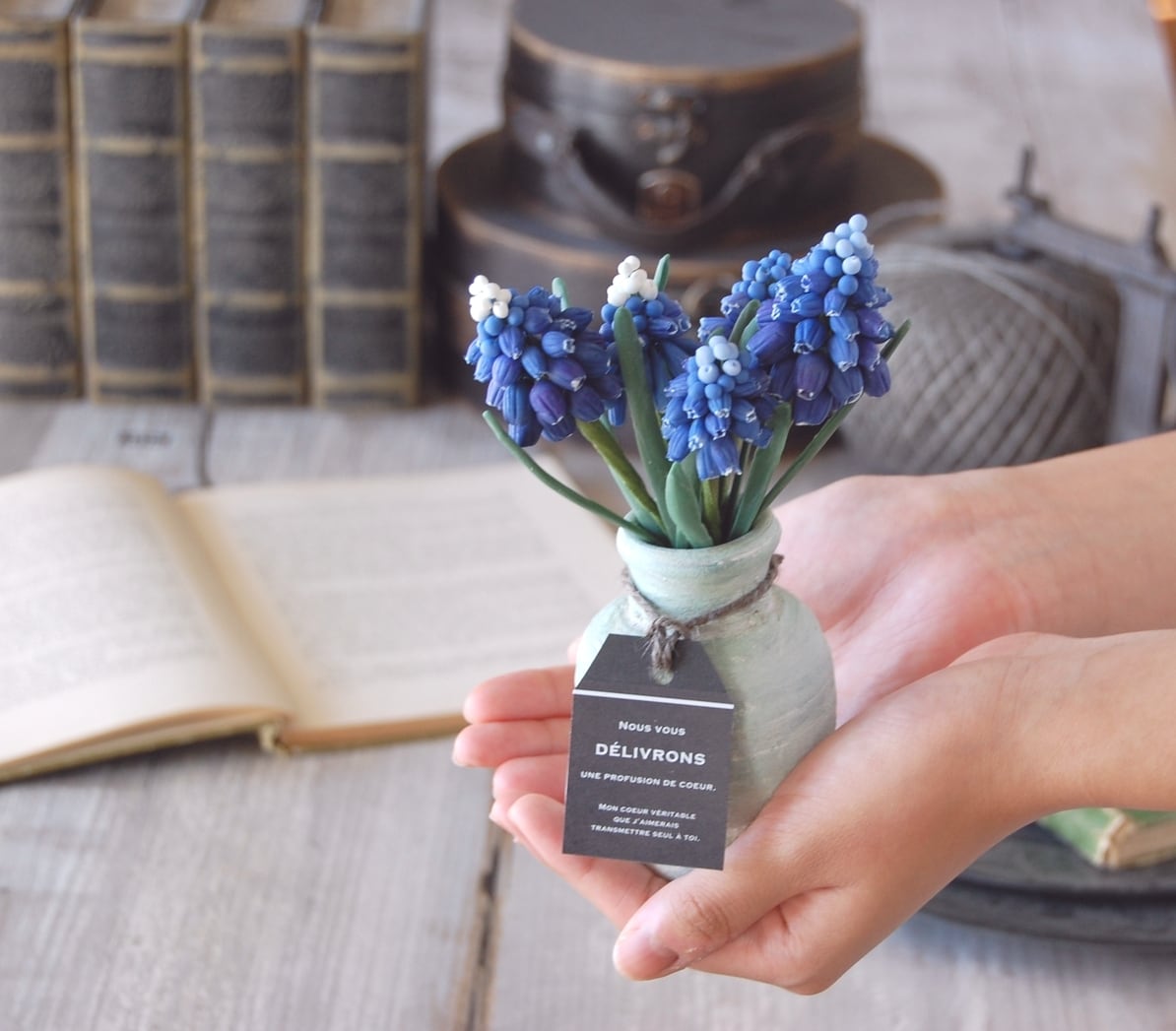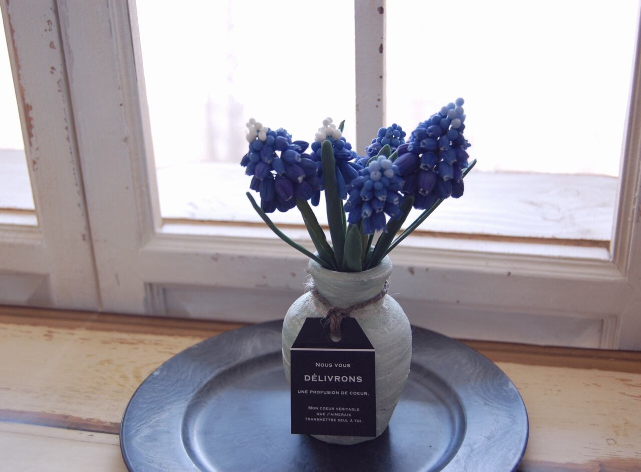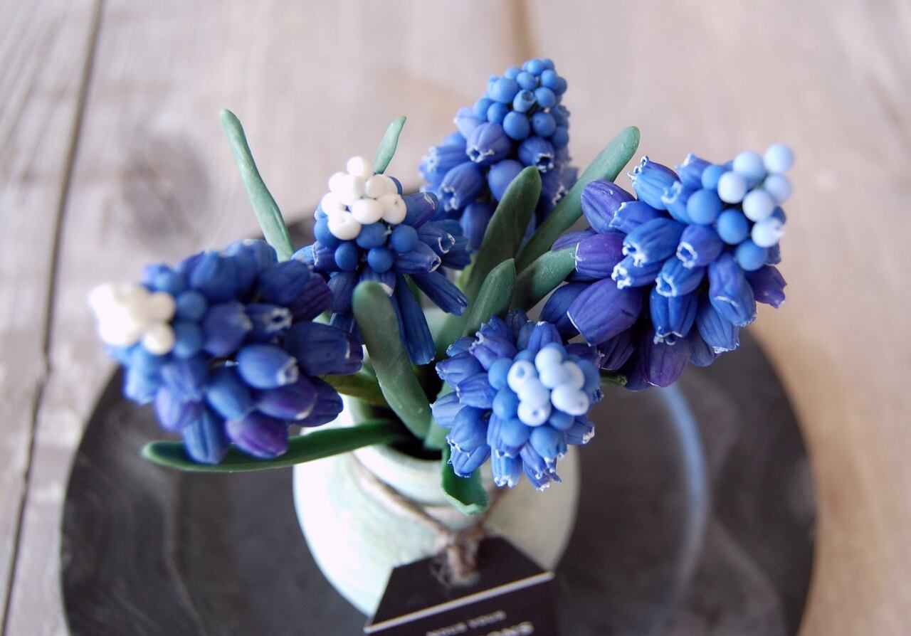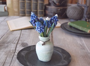 そんなムスカリを粘土で制作し、小さな壷に飾りました。