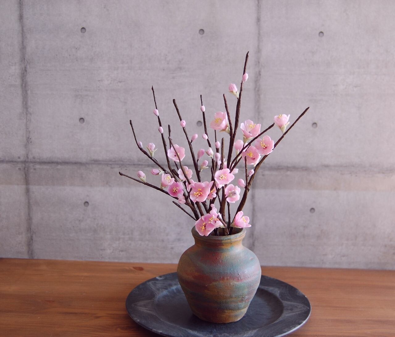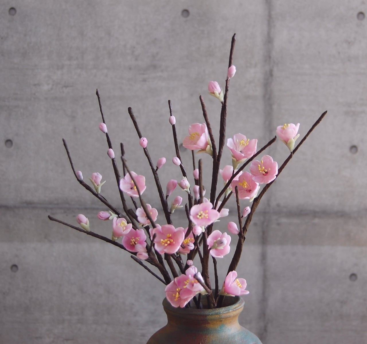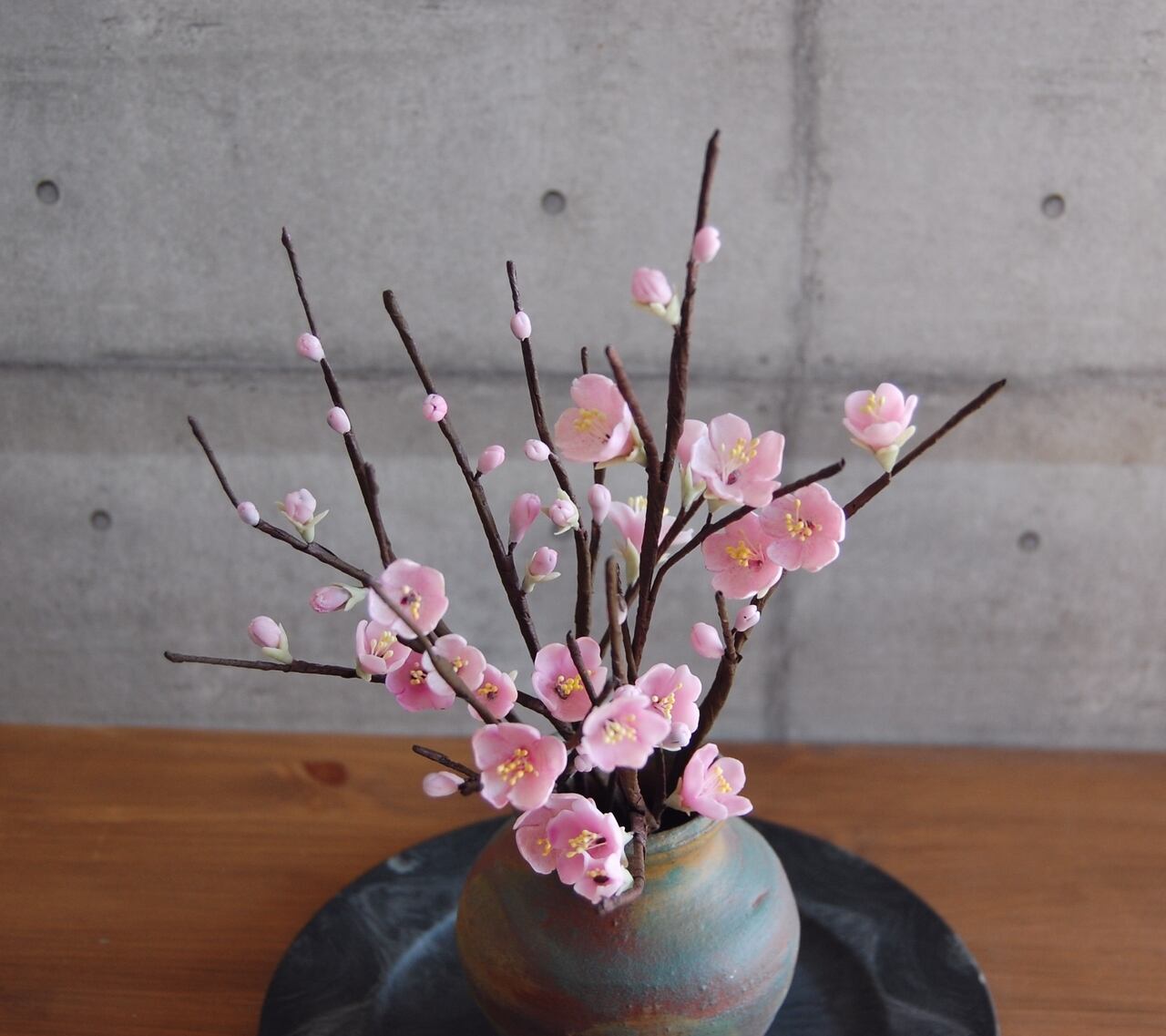 そんな梅を粘土で制作し、小さな壷に生けました。
