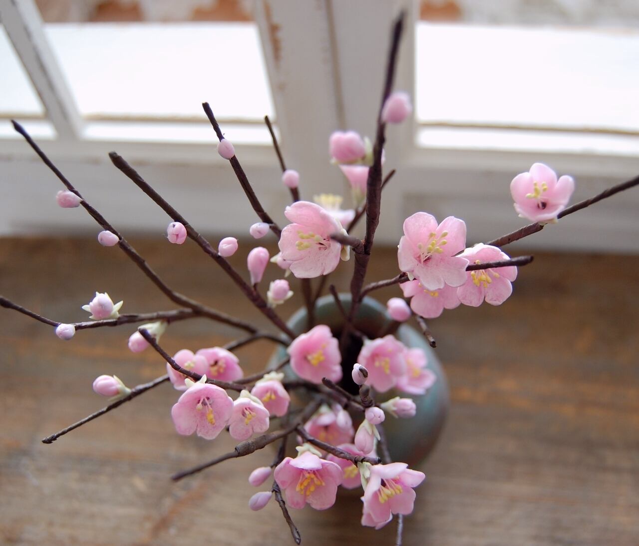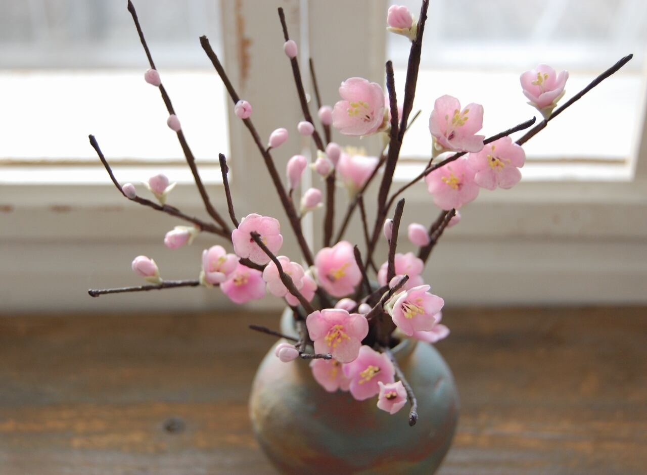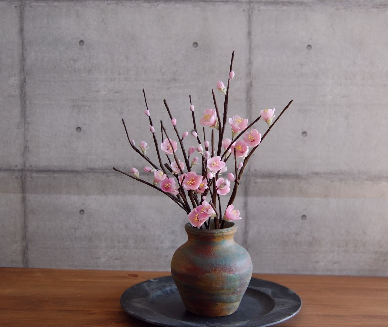そんな梅を粘土で制作し、小さな壷に生けました。