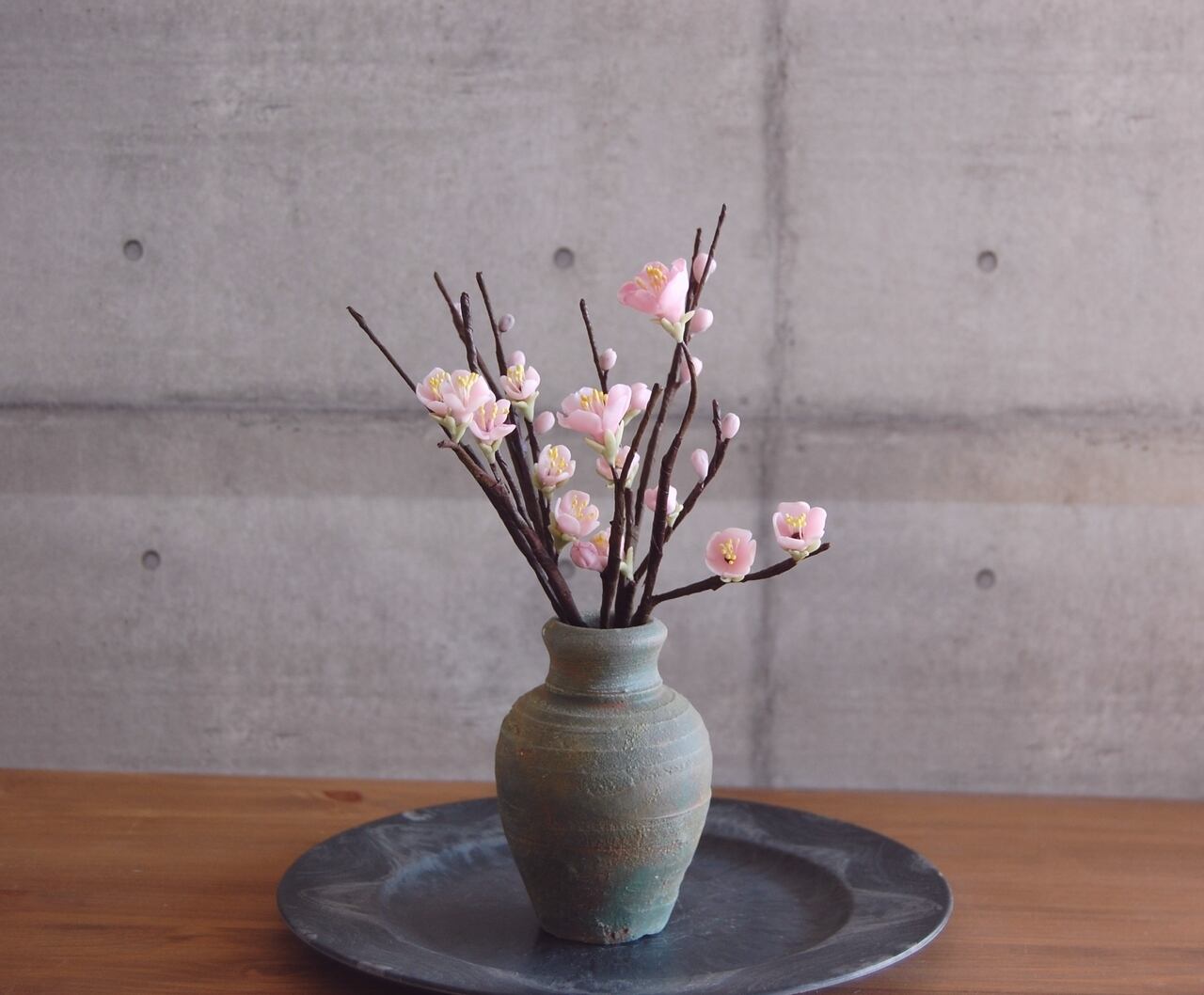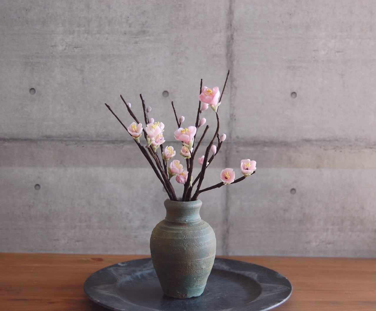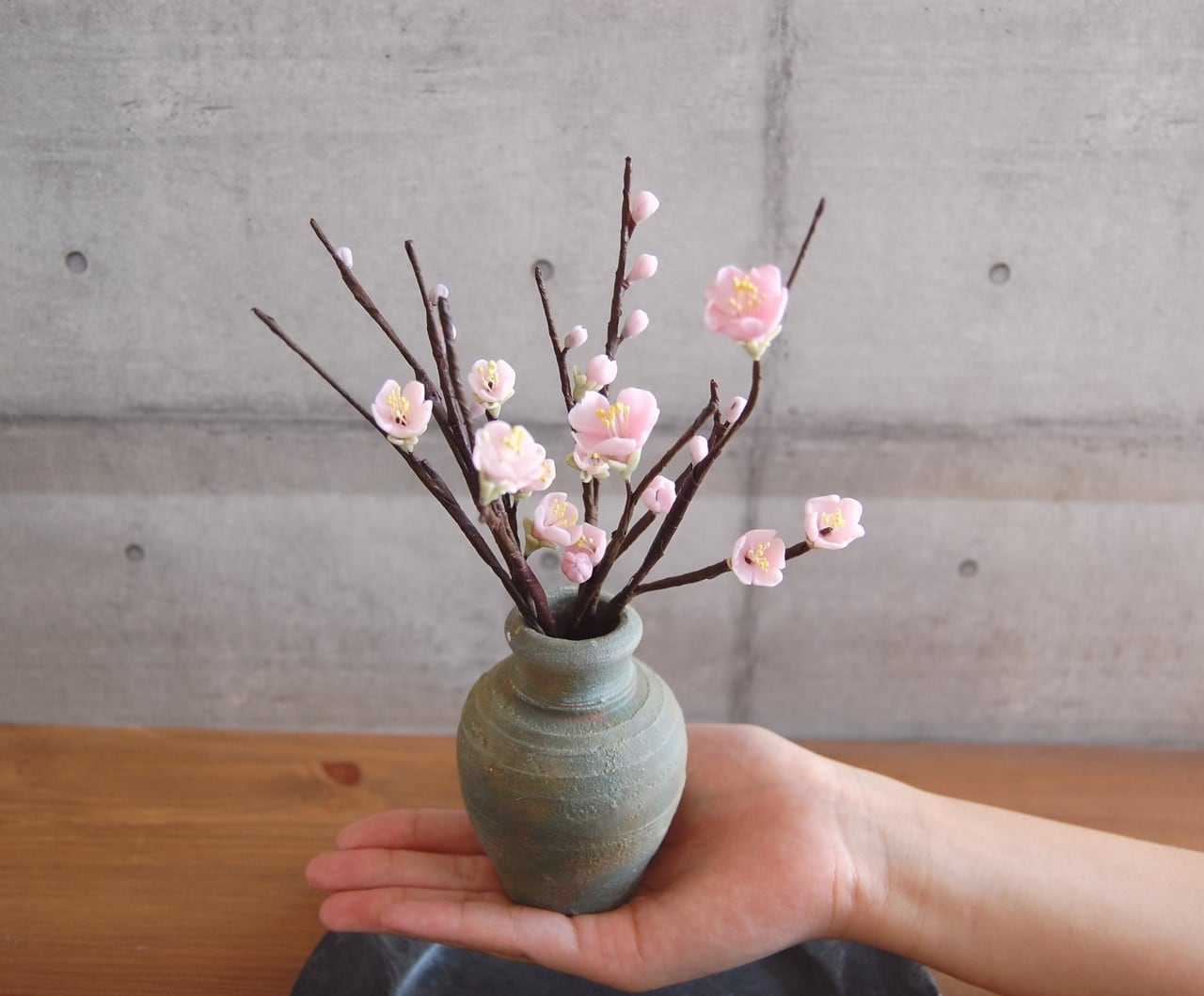 そんな梅を粘土で制作し、小さな壷に生けました。