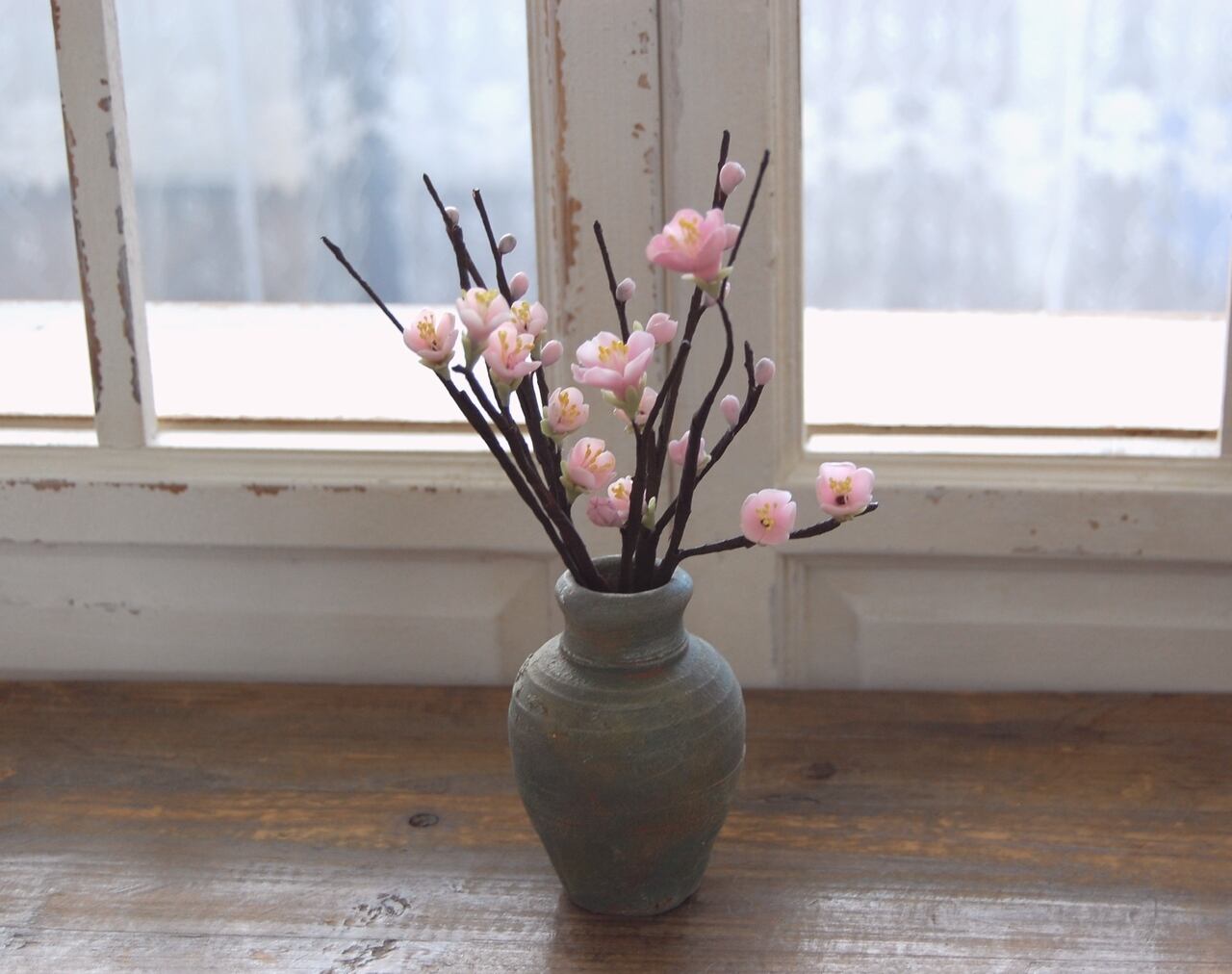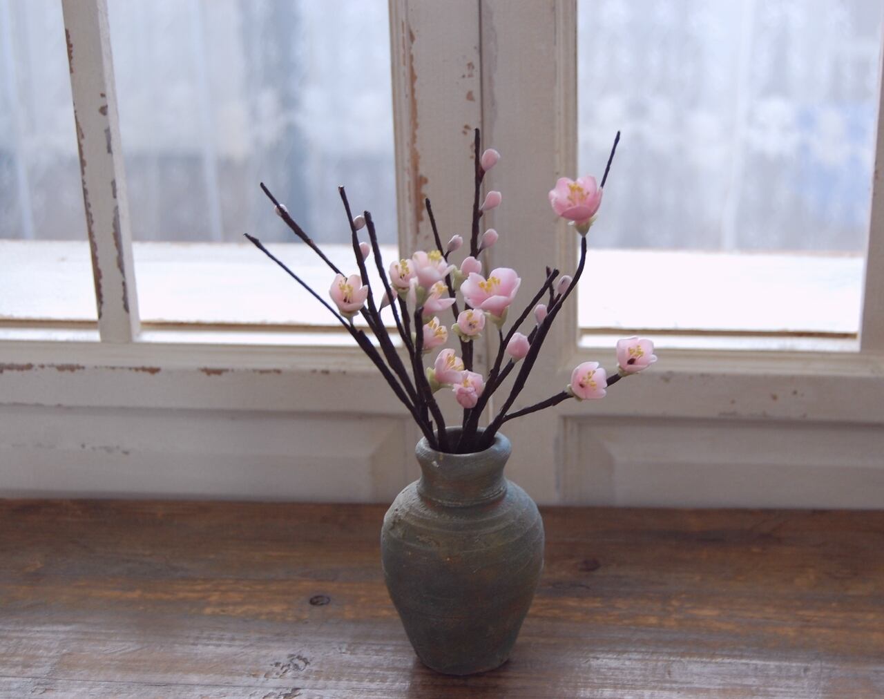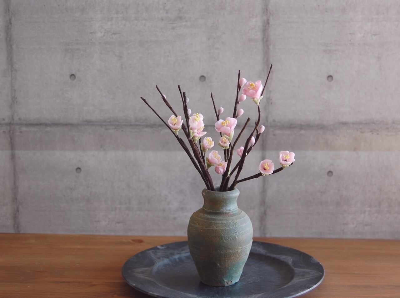 そんな梅を粘土で制作し、小さな壷に生けました。